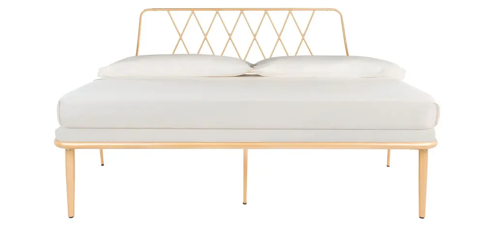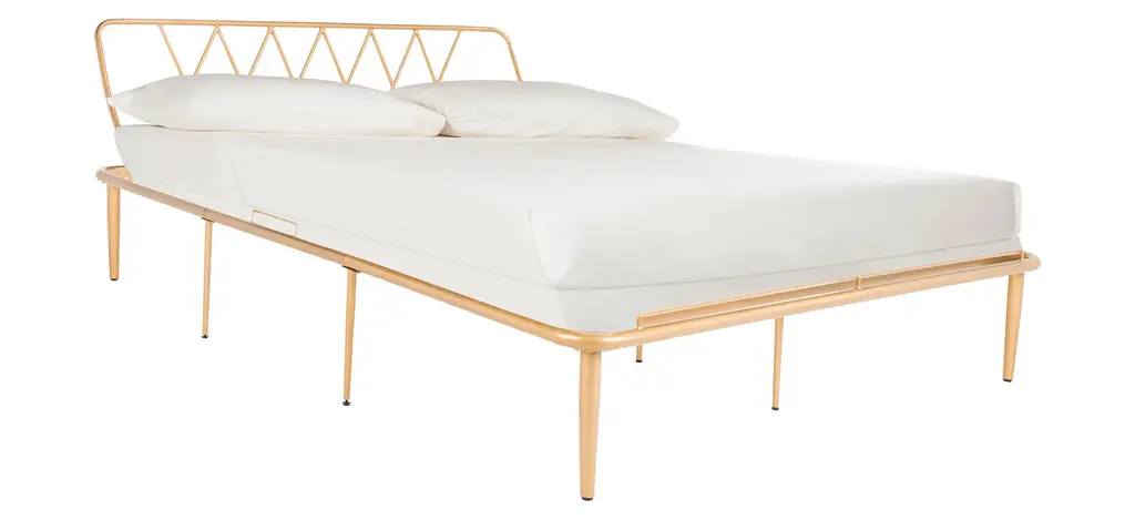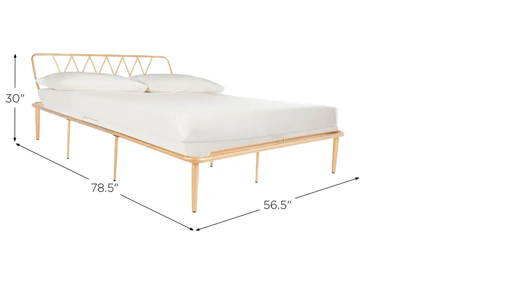 Fit for modern royalty, this contemporary Gatsby Great Full Bed ensures every dream is sweet. Its luxurious gold finish illuminates its sinuous curves, clean lines and slender legs for a decadent spin on minimalist style. It's the grand focal point of any soothing oasis.