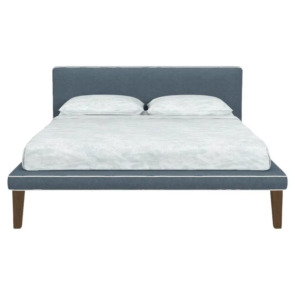 An essential bed, Cocò is suitable for any environment: poetic, iconic and familiar. Raised from the ground, it has a removable bed frame and a thin headboard with visible piping, available in contrasting colours to make its profile stand out. Upholstered with removable cover available in fabric or eco-friendly leather. The solid wood feet come in different finishes: natural walnut, or dyed in black, white, grey, ocean or dove-grey.Upholstered knock-down bed. Removable cover in fabric or eco-leather. Velcro fastening, with piping. Feet in solid wood: natural walnut, black, white, grey or air force blue finish. Not adjustable slat supports, space for slat and mattress: 5 cm. Suitable for the slats PIANO ARMONICO or RETE MN.Additional Information:Material: Upholstery, polyurethane foam, woodUpholstery: Munch Cat. C (6000)Feet: Natural WalnutDimension: 198 W x 217 D x 95 H cmSeat height: 33 cmMattress size: 180 W x 200 D cmAvailable in other frame finish options: Grey, black, white, air force blue finishAvailable in other upholstery options: Cat. I, Cat. H, Cat. B, Cat. D, Cat. EAvailable in other size options: F, E, Q, EKAvailable in other structural options