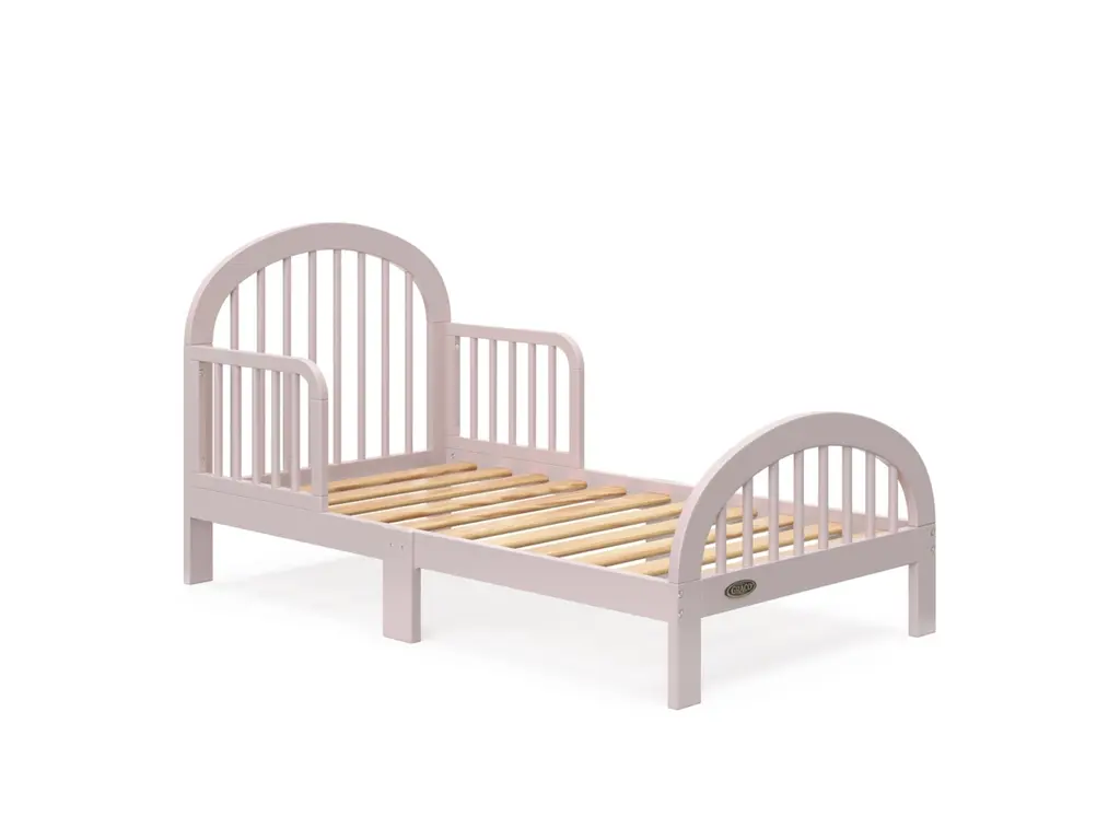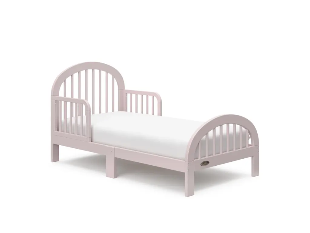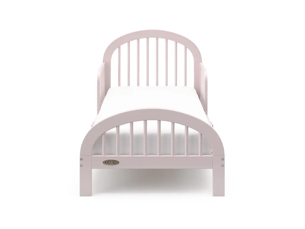 Facilitate your child’s seamless transition from the crib to their inaugural “big kid” bed with the Graco Olivia Toddler Bed. This exquisite bed embodies gentle curves, rounded details, and an effortlessly adaptable arched design, imparting a touch of sophistication to any bedroom setting. Meticulously tailored for toddlers, the Graco Olivia Toddler Bed not only epitomizes style but also promises effortless assembly and comes equipped with toddler guardrails for added safety. Meticulously crafted from durable pine wood, the Graco Olivia Toddler Bed meticulously adheres to or surpasses the stringent ASTM and CPSIA safety standards, guaranteeing your child’s well-being. Moreover, it proudly holds the esteemed GREENGUARD Gold Certification, signifying its rigorous screening for over 10,000 chemicals and VOCs to ensure superior indoor air quality. Rest assured, the Graco Olivia Toddler Bed bears the esteemed JPMA Certification, having undergone comprehensive testing by third-party accredited laboratories to exceed all pertinent safety regulations. Complemented by toddler safety guardrails featuring dowels on each side, this bed offers enhanced security for your little one. Compatible with any standard full-size crib and toddler mattress (Graco toddler mattress recommended), the Graco Olivia Toddler Bed delivers versatility and convenience. Graco takes pride in earning the coveted Parent Tested Parent Approved (PTPA) Seal of Approval for nursery and children's bedroom furniture, underscoring our unwavering dedication to excellence and safety. Enjoy peace of mind with the 1-year limited manufacturer's warranty, knowing that your child's bed is backed by our pledge to deliver enduring quality and reliability. Please note that assembly is required, and the mattress is sold separately. Toddler safety guardrails are included to ensure your child's safety and comfort as they transition gracefully to their “big kid” bed.