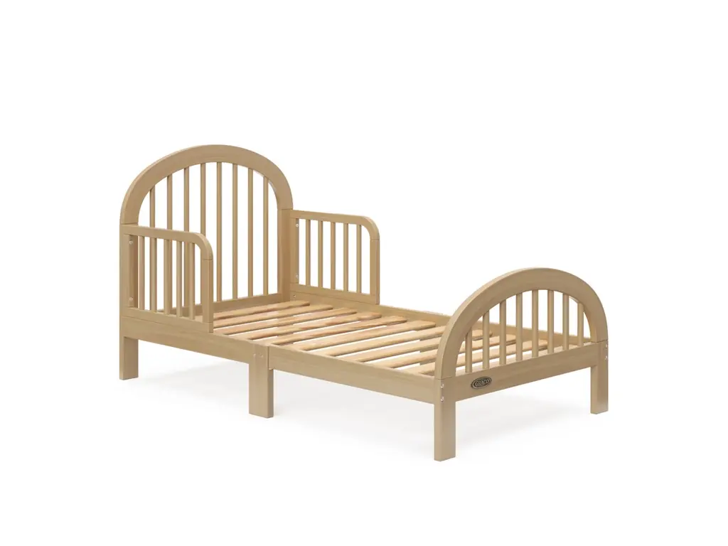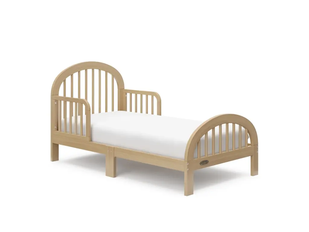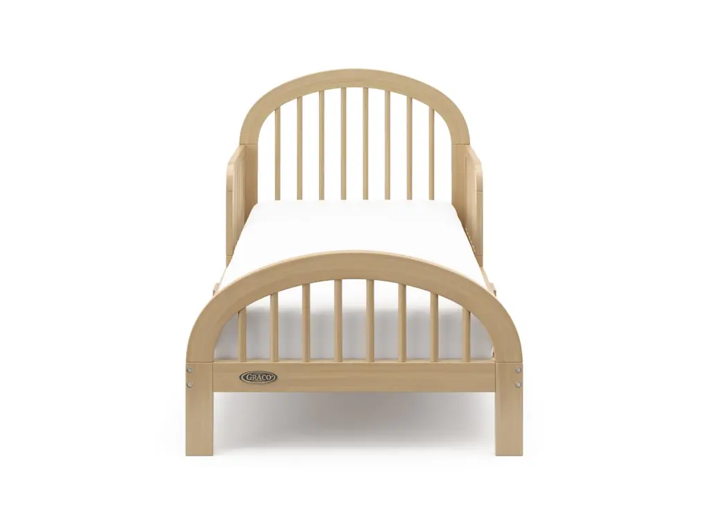 Facilitate your child’s seamless transition from the crib to their inaugural “big kid” bed with the Graco Olivia Toddler Bed. This exquisite bed embodies gentle curves, rounded details, and an effortlessly adaptable arched design, imparting a touch of sophistication to any bedroom setting. Meticulously tailored for toddlers, the Graco Olivia Toddler Bed not only epitomizes style but also promises effortless assembly and comes equipped with toddler guardrails for added safety. Meticulously crafted from durable pine wood, the Graco Olivia Toddler Bed meticulously adheres to or surpasses the stringent ASTM and CPSIA safety standards, guaranteeing your child’s well-being. Moreover, it proudly holds the esteemed GREENGUARD Gold Certification, signifying its rigorous screening for over 10,000 chemicals and VOCs to ensure superior indoor air quality. Rest assured, the Graco Olivia Toddler Bed bears the esteemed JPMA Certification, having undergone comprehensive testing by third-party accredited laboratories to exceed all pertinent safety regulations. Complemented by toddler safety guardrails featuring dowels on each side, this bed offers enhanced security for your little one. Compatible with any standard full-size crib and toddler mattress (Graco toddler mattress recommended), the Graco Olivia Toddler Bed delivers versatility and convenience. Graco takes pride in earning the coveted Parent Tested Parent Approved (PTPA) Seal of Approval for nursery and children's bedroom furniture, underscoring our unwavering dedication to excellence and safety. Enjoy peace of mind with the 1-year limited manufacturer's warranty, knowing that your child's bed is backed by our pledge to deliver enduring quality and reliability. Please note that assembly is required, and the mattress is sold separately. Toddler safety guardrails are included to ensure your child's safety and comfort as they transition gracefully to their “big kid” bed.