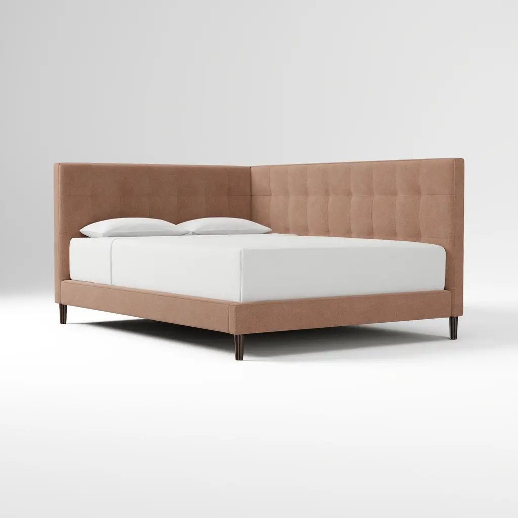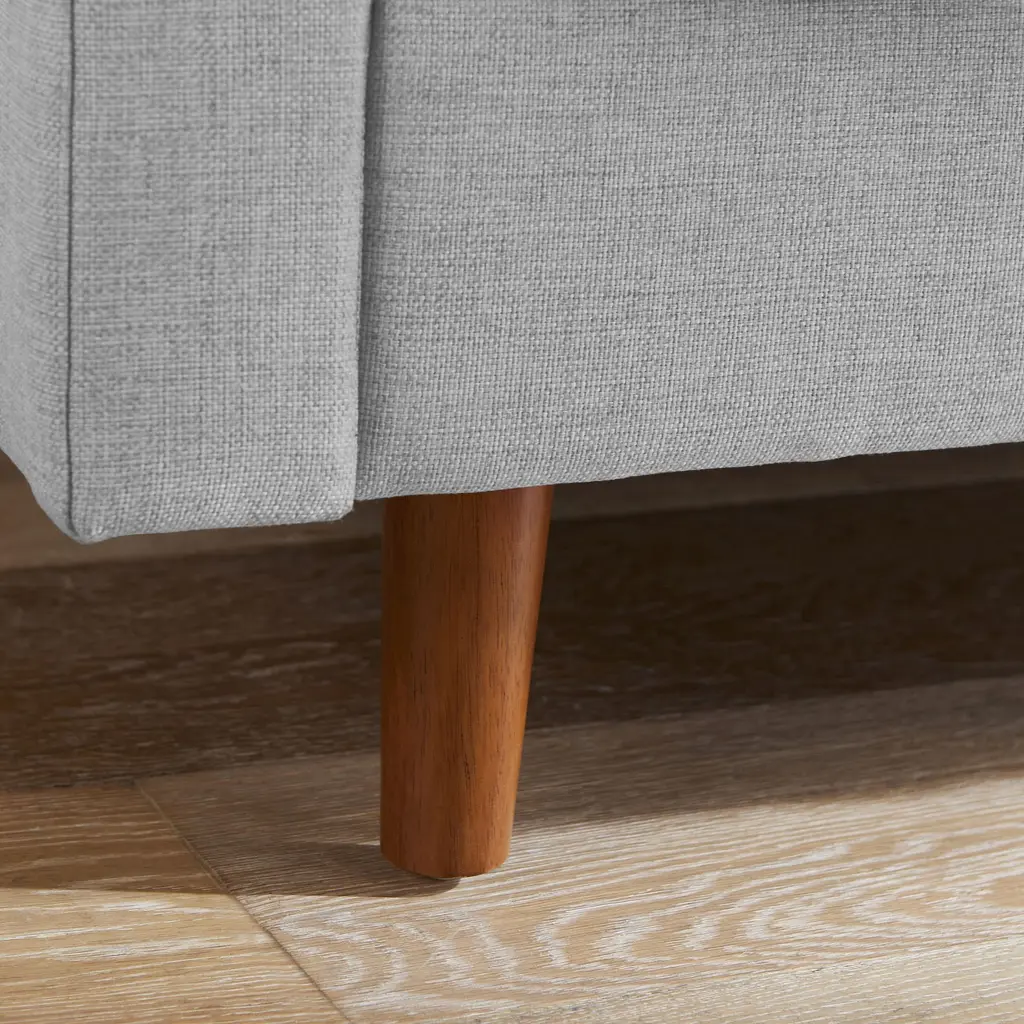 It's a retro spin on a classic shape. Hand upholstered in plush fabric or smooth vegan leather. Creates a cozy corner in any room. GREENGUARD Gold Certified for added safety.