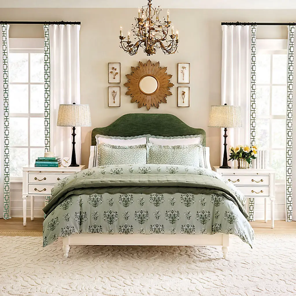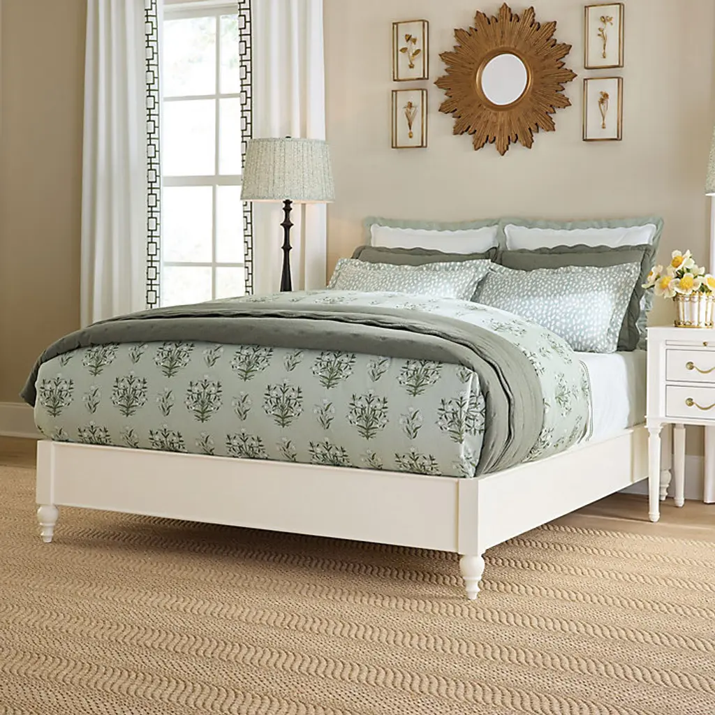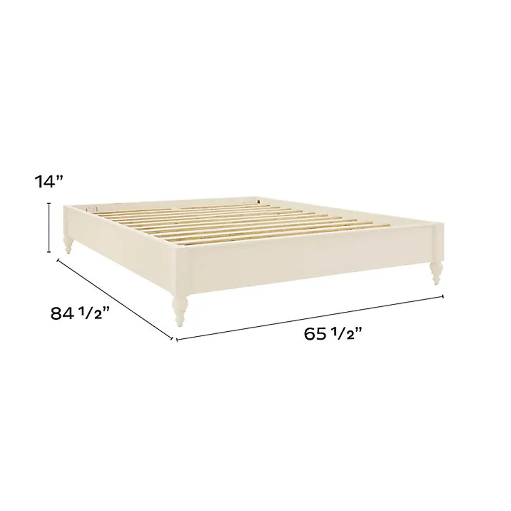The Griffin Bed Frame is designed to work exclusively with our popular Camden and Suzanne Kasler Sofia upholstered headboards. The sturdy silhouette is bench made of solid oak with fresh white finish and inset rails. Beautifully turned baluster feet complete the timeless look. Slatted rail deck is designed for a boxspring and mattress. Frames are generously sized to accommodate variations in mattress sizes. We recommend pairing your Griffin Bed Frame with one of our exclusive Mattress and Foundation sets. Griffin Bed Frame features: