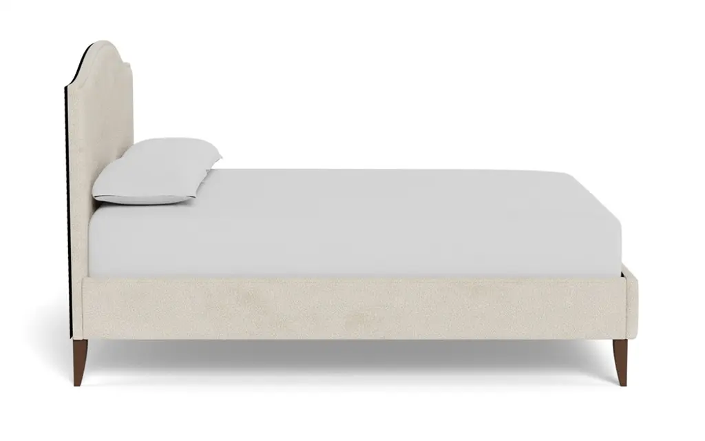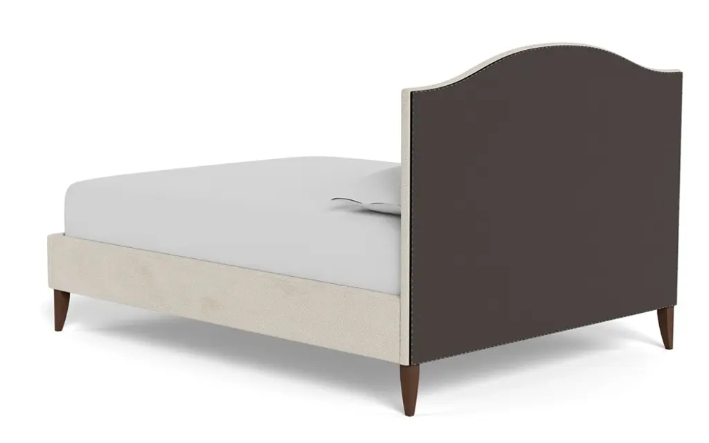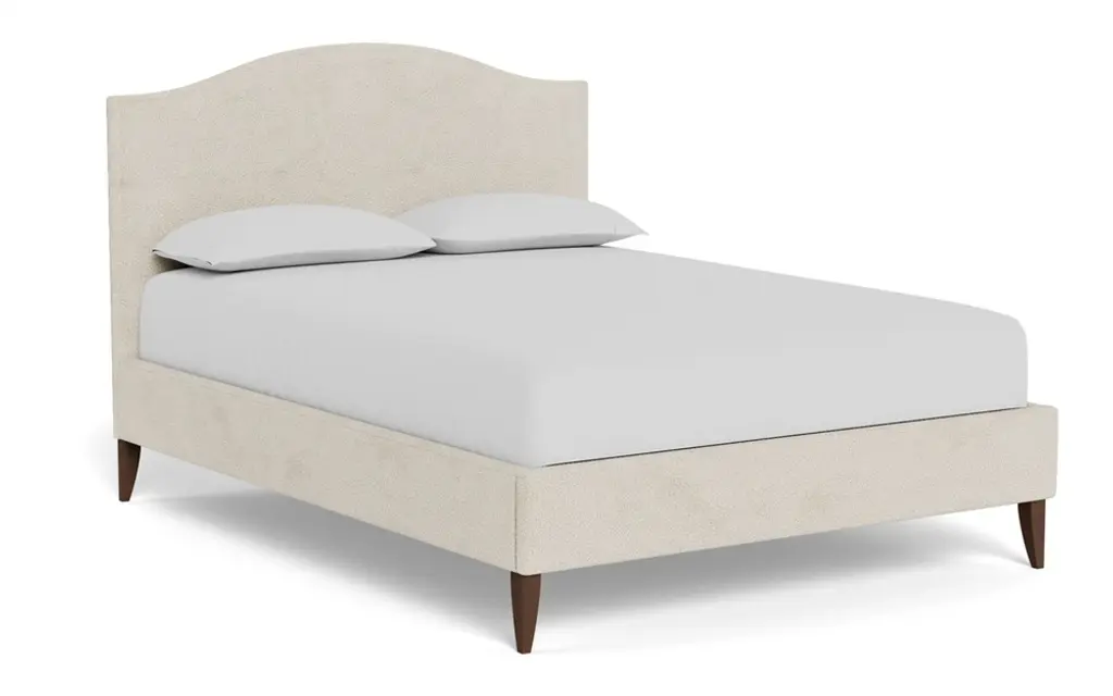 Our queen Griffin bed features shaped wood legs, clean lines, and a gently curved headboard, lending a casual, comfortable feel to any bedroom. The fully upholstered frame offers a soft, cozy backdrop for restful evenings and slow mornings in bed.