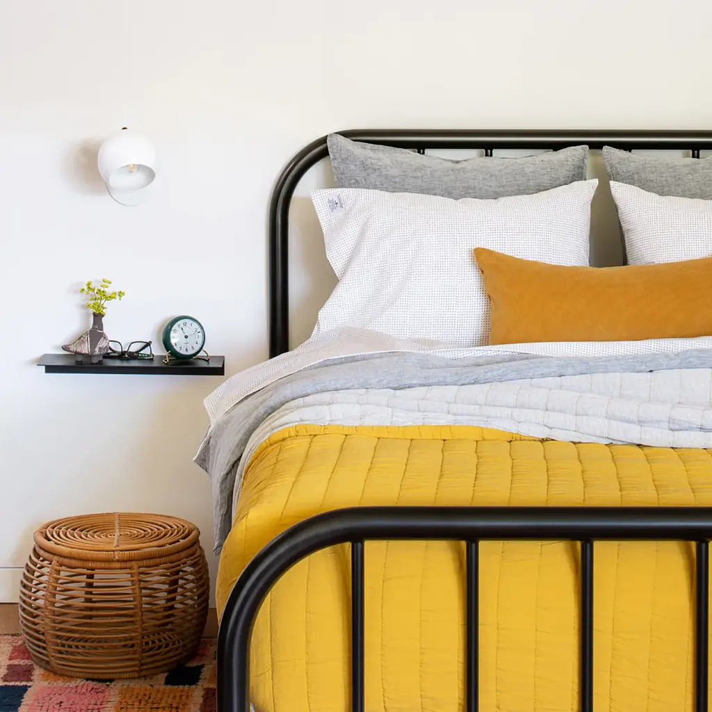 Simple yet striking, the Hamilton Bed’s clean lines take their cue from early 20th century iron bedsteads. The design is built to last, too, with a durable steel frame and powder-coated finish. Keep things neutral with white or black, or go bold with one of the colorful finishes.Get Finish Samples