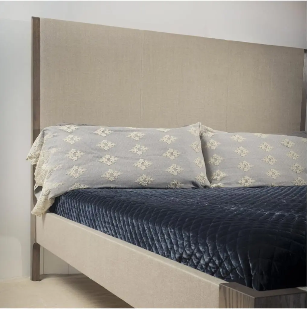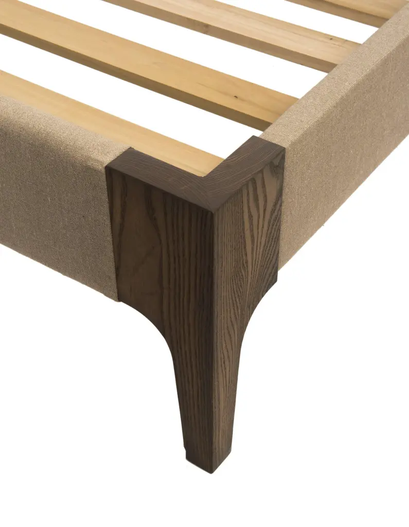 Designed by Ashley Yeates, 'The Modern Hepburn,' handcrafted in California using FSC-certified wood and non-toxic finishes. COM/COLThe Robin Bed is part of the Sea to Sierra Collection that offers personal customization of design elements paying tribute to the coastal landscape of Northern California.Originating from Ashley’s dreamlike vision of the beach, selections of faded and painted wood, supple upholstery and translucent glass combine to refresh the mind and nourish the soul.Transitioning to the mountains, rich wood finishes, fine marble and soft leather invigorate the senses and energize the spirit. Multipurpose and transitional pieces may be tailored to best compliment your home and natural surroundings.Designed by Ashley Yeates, the Robin bed is elegant and refined simplicity, handmade in the United States, bed frame with upholstered headboard and rails accented by North American ashwood curved corners and French stitching.The Robin Bed is made to order, and therefore completely customizable. 14 yards of fabric COM (customer's own material required). We have a wide variety of fabrics available for purchase if needed.