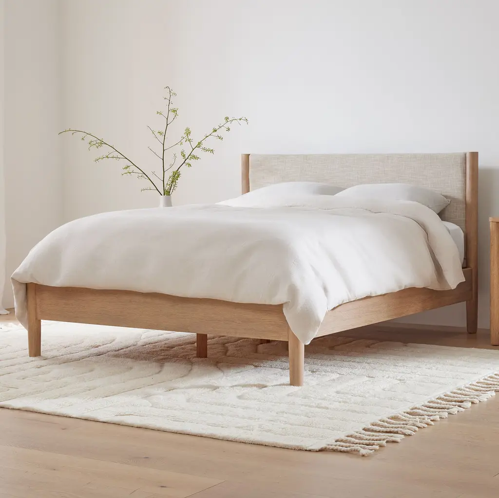 Upholstered headboard with farmhouse style. Simple, versatile finish that looks good in any room. Made of kiln-dried, sustainably sourced wood. Contract Grade, so you know it's built to last.