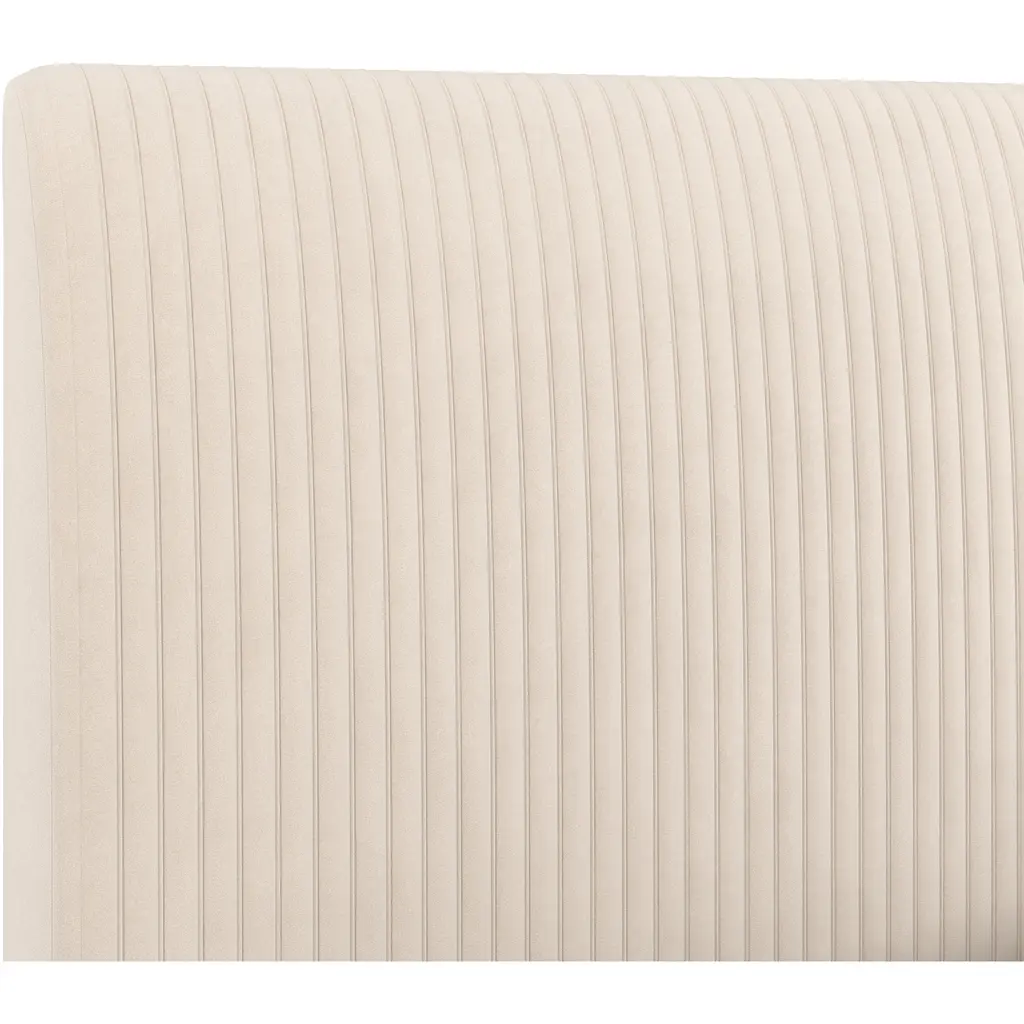 Add a touch of modern style to any bedroom space with this comfortable bed. Upholstered in casablanca cloud performance fabric, and features fine vertical tufting on the headboard. Completed with stainless steel gold legs. No box spring is required and slats are included. Performance fabric is moisture repellent, durable and easy to clean.