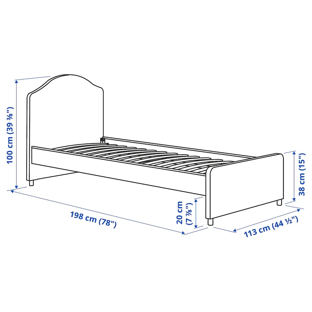 HAUGA Upholstered bed frame - Lofallet beige Twin. Designed to coordinate perfectly with the rest of the HAUGA series, the upholstered bed frame adds a touch of softness to your bedroom, bringing comfort during the night, and adding style around the clock. Mattress and bedlinens are sold separately.