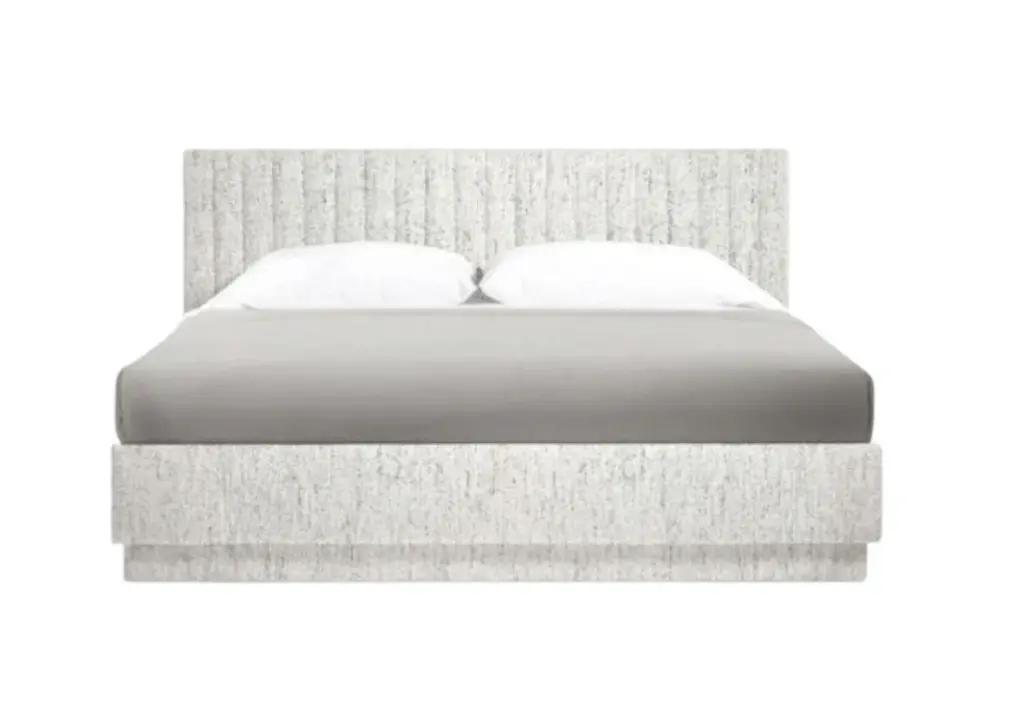 Luxurious upholstery in textured loom Maya Jade pairs with the stunning style of horizontal channel tufting to make the Hawthorne King Bed truly fit for royalty.