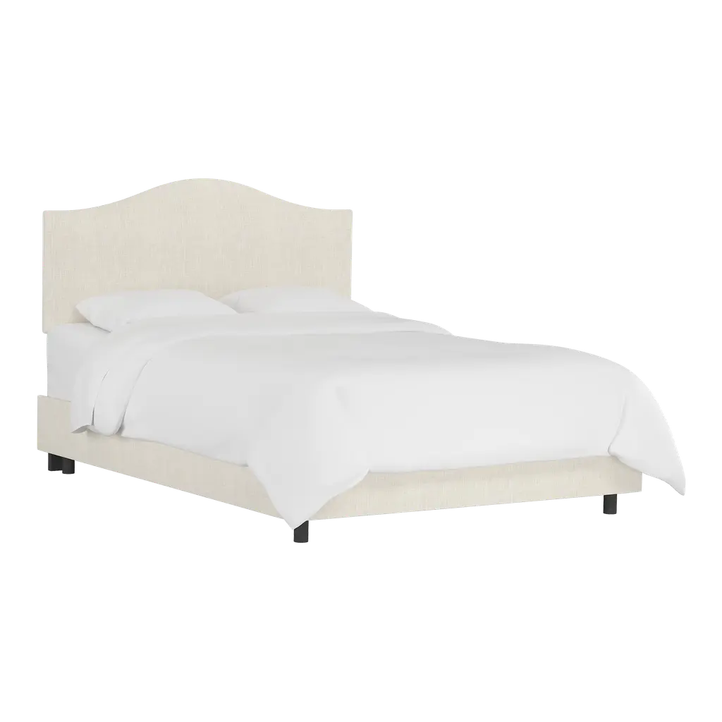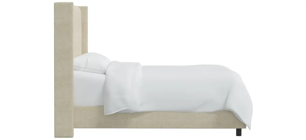 The Haley queen square top bed features a straight wingback design alongside a plain front. These elements blend perfectly to lend a touch of style and create a piece that will be the center of your bedroom design. The made to order headboard matches up easily with the included metal frame and hand upholstered rails making assembly simple. An inclusive transitional design makes it an easy addition to any bedroom space. The bed is manufactured in Illinois and highlights a beautiful Woven fabric.
