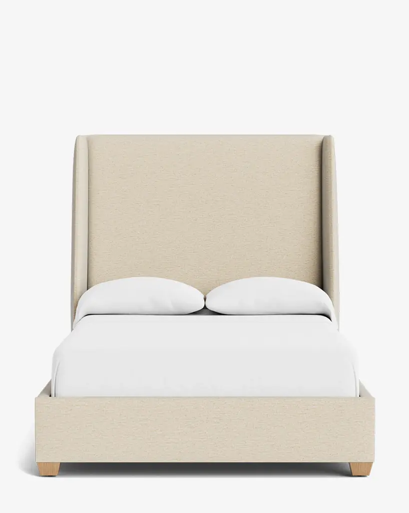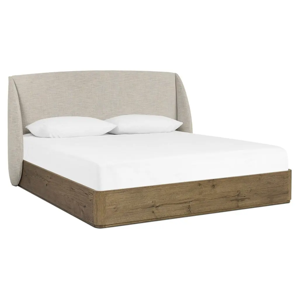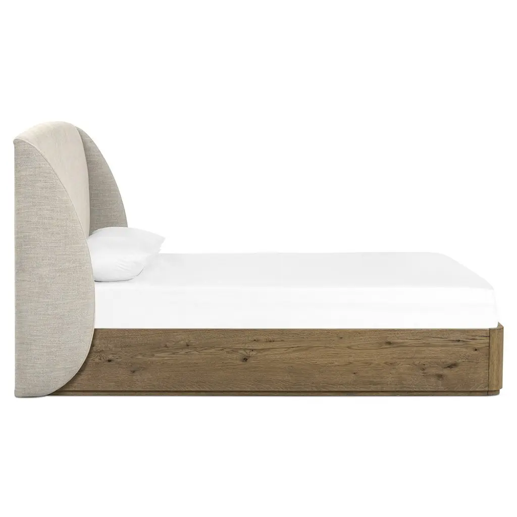 Helen Modern Classic Beige Performance Natural Oak Wingback Bed - Queen