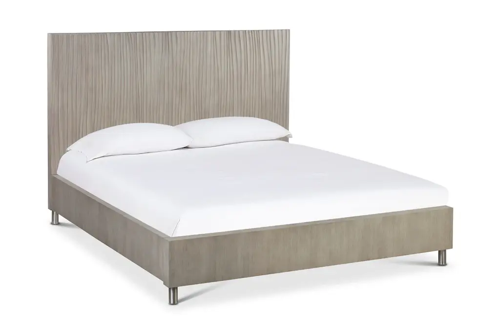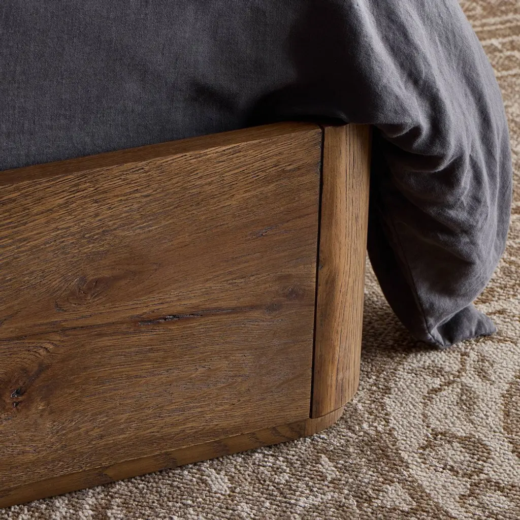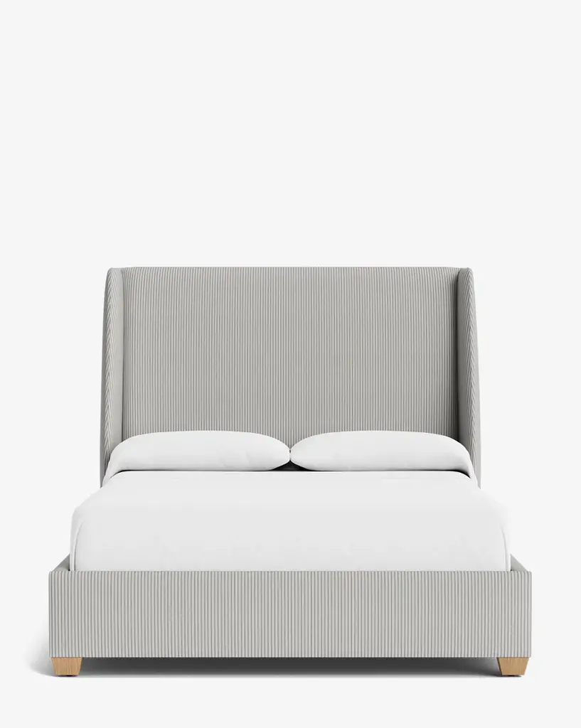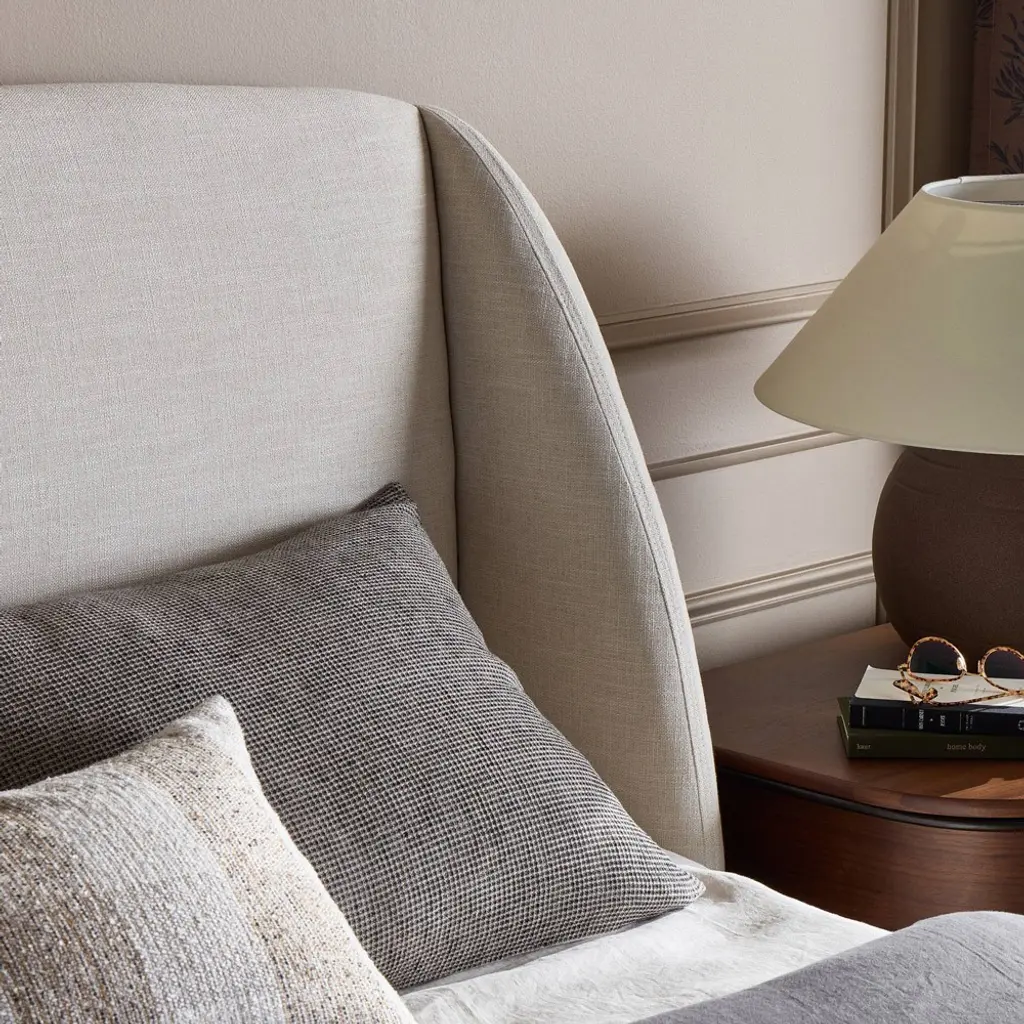 Helen Modern Classic Beige Performance Natural Oak Wingback Bed - Queen