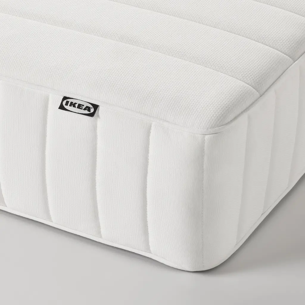 HEMNES Bed frame with mattress - white stain/Valevåg firm Queen. The sturdy solid pine frame has natural variations in grain, color and texture, giving every piece a unique look. And it has been stained and lacquered making it more durable and easy to care for.