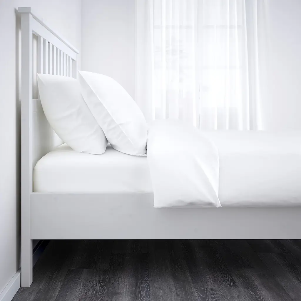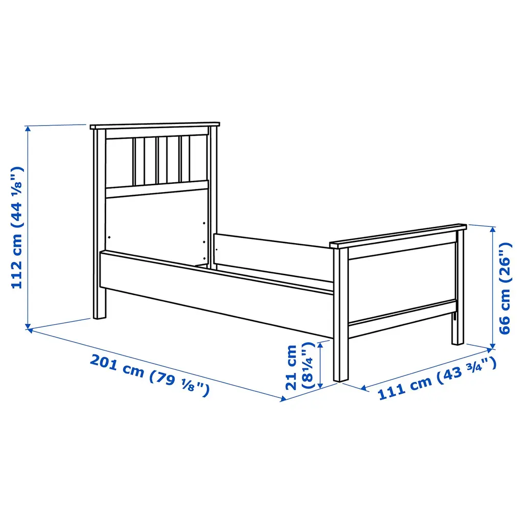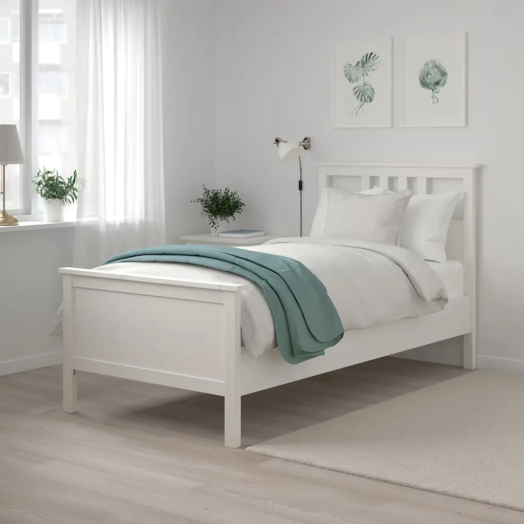 HEMNES Bed frame with mattress - white stain/Valevåg medium firm Twin. The sturdy solid pine frame has natural variations in grain, color and texture, giving every piece a unique look. And it has been stained and lacquered making it more durable and easy to care for.