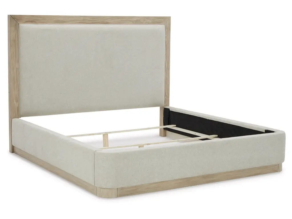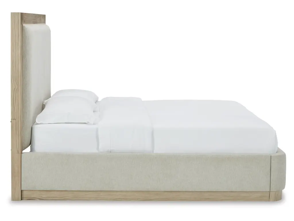 Get the luxe modern contemporary design you love at an affordable price. The Hennington queen upholstered panel bed features a structured silhouette on a plinth base that elevates the piece to a modern masterpiece. Soft yet still sleek in design, this bed's side rails and footboard are cushioned and have rounded ends. The textural surface of the bisque-colored wood pairs beautifully with the neutral upholstery.