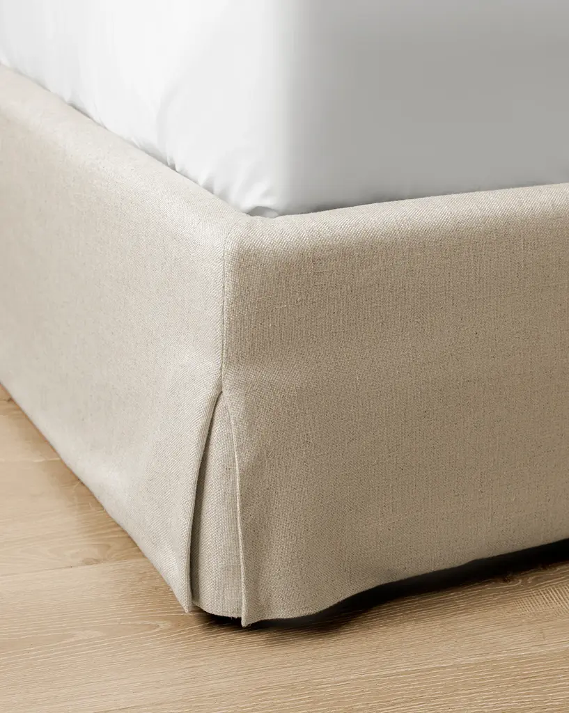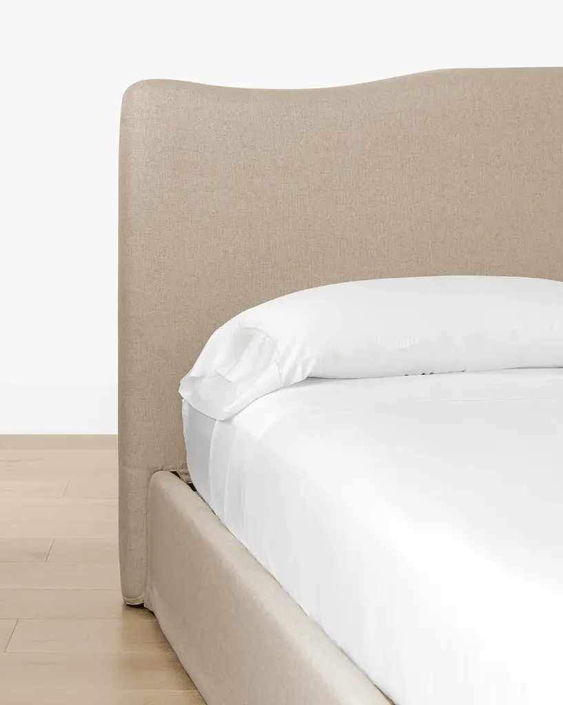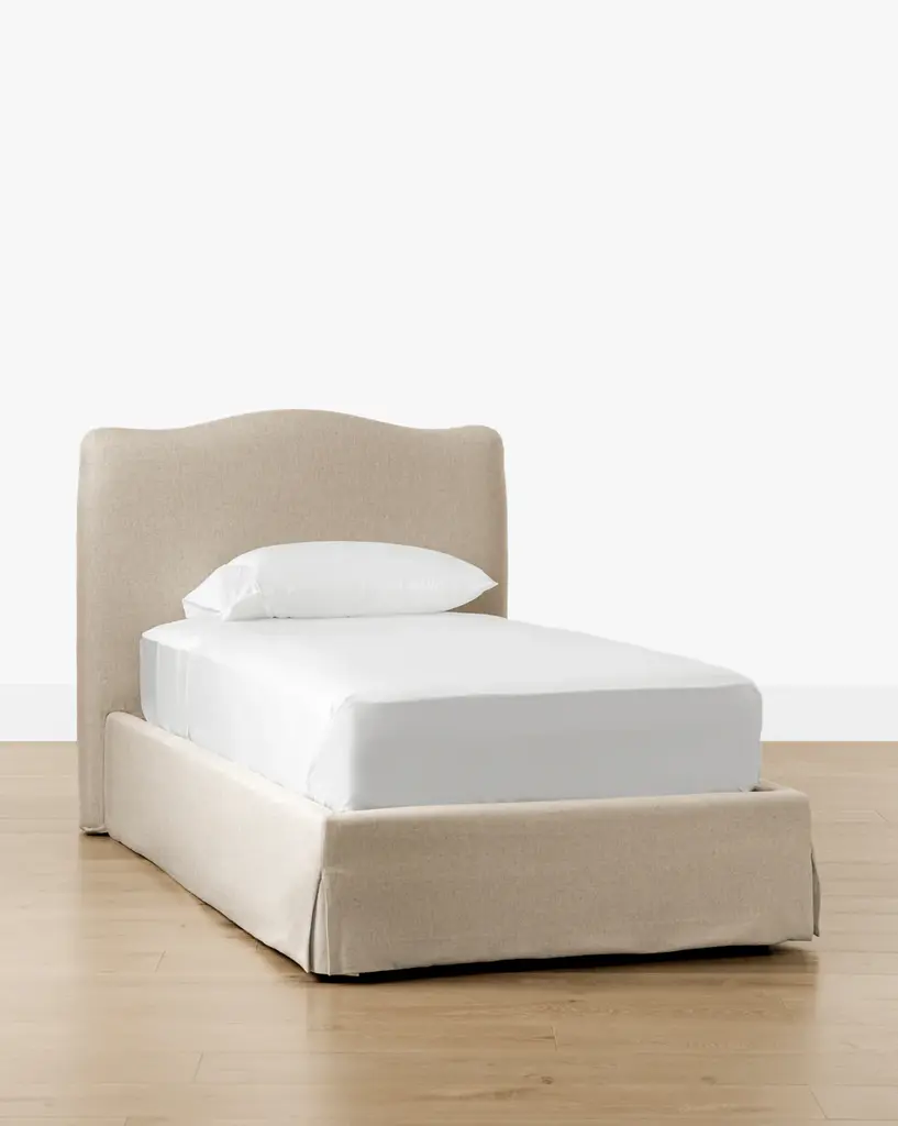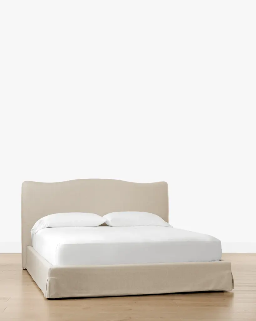 Our Henrietta Bed is a stately but neutral upholstered bed to provide an anchoring point for your bedroom styling. With a subtly traditional curved design in the headboard, this upholstered bed is versatile and refreshing.