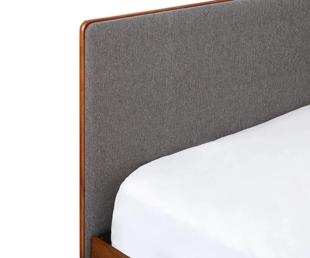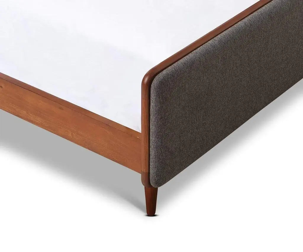 The refined elegance of the Holfred Bed is achieved by the perfect balance of soft, upholstered elements with organic wood details. The finely-tailored headboard and footboard complement the warm wood on the sides of the frame and the tapered legs. Given the low profile, it occupies a smaller footprint in your bedroom, yet gracefully maintains its statement status. *Queen and Full beds pictured.