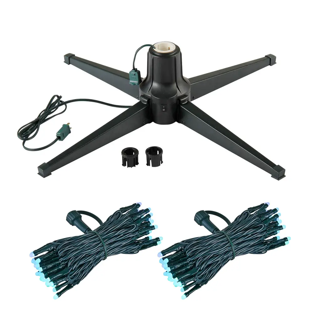 Make your Christmas tree a focal point from every angle with the Home Heritage Rotating Christmas Tree Stand. This heavy-duty stand is designed for artificial trees up to 7.5 feet tall or 90 pounds. Its sturdy, all-metal construction ensures stability and prevents tipping. The stand comes with three different adapters to fit tree poles of various sizes. With its smooth motion and easy on/off switch, this stand showcases your beautifully decorated tree while adding a touch of elegance to your holiday decor. The included Lumations Twinkly App-Controlled RGB LED Lights allow you to create a customized light display using your smartphone. Control the lights remotely, choose from a variety of effects, and even integrate them with your smart home devices. The Home Heritage Rotating Christmas Tree Stand and Lumations Twinkly Lights are the perfect combination to make your holiday celebrations truly magical.Features:Home Heritage GX1624U31503 Stand:Lumations L8050070NU45 Lights (2 pack):