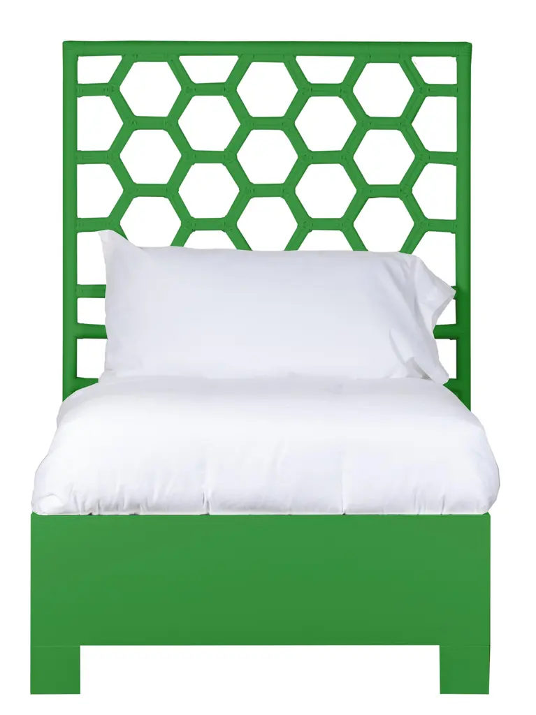 A timeless design, this classically styled bed features a Rattan headboard with a Maple Bed Frame. The Rattan headboard is hand-wrapped with Rawhide Bindings to add a beautiful contrast and strength. The Maple Bed Frame, which accepts a box spring and mattress, is built in the USA. The Rattan headboard easily attaches to the Bed Frame. Each bed is custom made and finished to order. This bed is an artistic centerpiece and will make a statement in any bedroom.