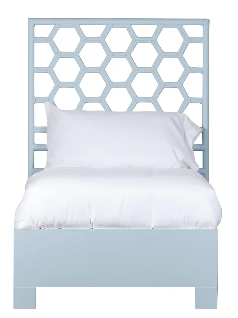 A timeless design, this classically styled bed features a Rattan headboard with a Maple Bed Frame. The Rattan headboard is hand-wrapped with Rawhide Bindings to add a beautiful contrast and strength. The Maple Bed Frame, which accepts a box spring and mattress, is built in the USA. The Rattan headboard easily attaches to the Bed Frame. Each bed is custom made and finished to order. This bed is an artistic centerpiece and will make a statement in any bedroom.