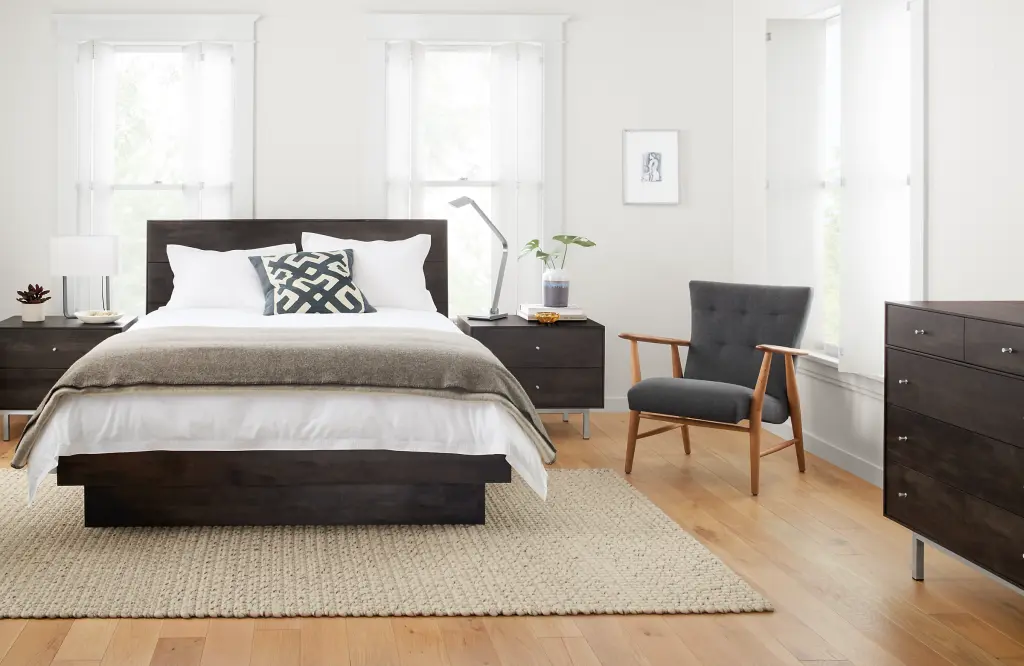 Built to be rock solid, this modern bed is handcrafted in West Virginia by skilled artisans, who share their pride by signing the back of each piece. The natural grain of sustainably sourced U.S. solid wood is the perfect backdrop for the sleek, timeless design of this collection.