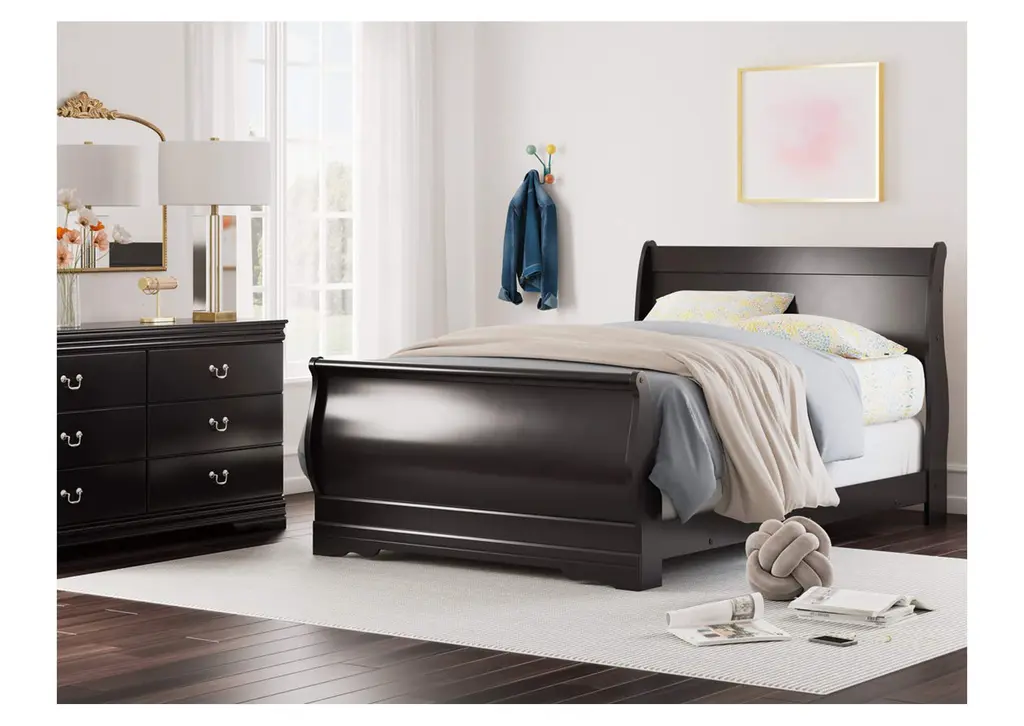 The Huey Vineyard full sleigh bed is the epitome of traditional decor. Louis Philippe-style moulding dates back to the mid-19th century when furnishings were lavish yet somewhat simple. Luxe finish adds a slightly modern touch. Mattress and foundation/box spring sold separately. Weight 121.520 lbs. (54.68kgs.)
