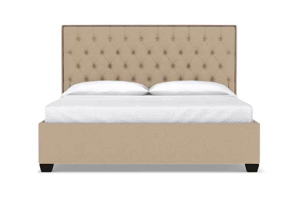 The Huntley Drive Upholstered Bed is an expertly-crafted bed that features an ornate button tufted headboard with a rustic antique nailhead trim. The lavish qualities of the Huntley Drive are balanced out with a contemporary and clean low profile base. The Huntley Drive Upholstered Bed comes in a Full Size, Queen Size, King Size, and California King. This bed does require a box spring for your mattress to achieve proper support. The Huntley Drive is the perfect bed for adding a touch of glamour and class to your apartment or your home. It's also one of our fantastic Apt2B products that's built to order in our downtown Los Angeles factory where it is upholstered in any of our quality line of pet friendly and kid friendly fabrics. The Huntley Drive Upholstered Bed is sure to give you sweet dreams.