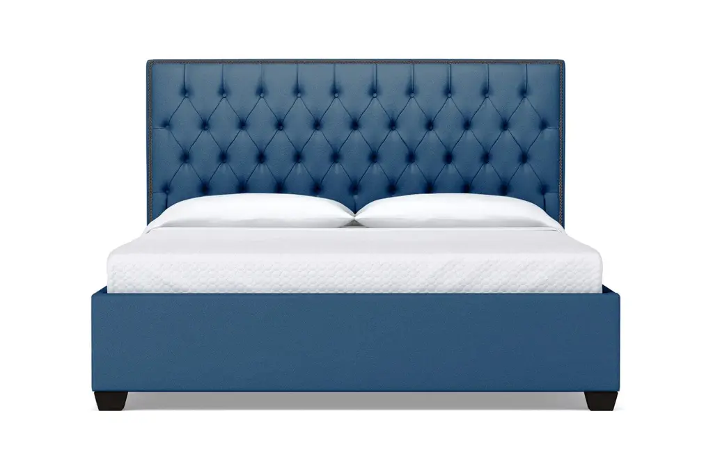 The Huntley Drive Upholstered Bed is an expertly-crafted bed that features an ornate button tufted headboard with a rustic antique nailhead trim. The lavish qualities of the Huntley Drive are balanced out with a contemporary and clean low profile base. The Huntley Drive Upholstered Bed comes in a Full Size, Queen Size, King Size, and California King. This bed does require a box spring for your mattress to achieve proper support. The Huntley Drive is the perfect bed for adding a touch of glamour and class to your apartment or your home. It's also one of our fantastic Apt2B products that's built to order in our downtown Los Angeles factory where it is upholstered in any of our quality line of pet friendly and kid friendly fabrics. The Huntley Drive Upholstered Bed is sure to give you sweet dreams.