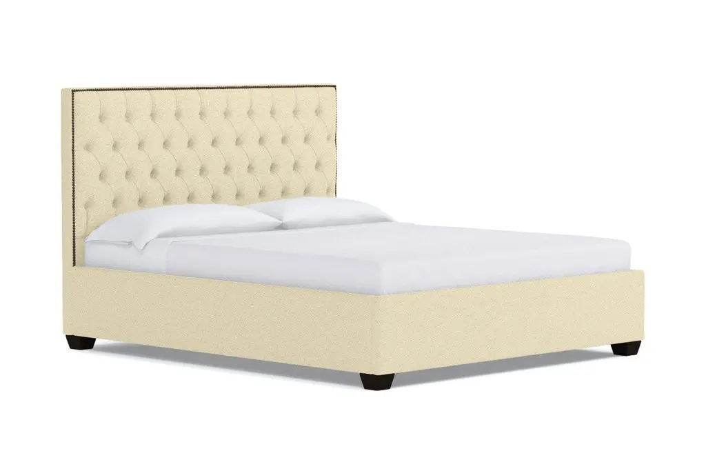 The Huntley Drive Upholstered Bed is an expertly-crafted bed that features an ornate button tufted headboard with a rustic antique nailhead trim. The lavish qualities of the Huntley Drive are balanced out with a contemporary and clean low profile base. The Huntley Drive Upholstered Bed comes in a Full Size, Queen Size, King Size, and California King. This bed does require a box spring for your mattress to achieve proper support. The Huntley Drive is the perfect bed for adding a touch of glamour and class to your apartment or your home. It's also one of our fantastic Apt2B products that's built to order in our downtown Los Angeles factory where it is upholstered in any of our quality line of pet friendly and kid friendly fabrics. The Huntley Drive Upholstered Bed is sure to give you sweet dreams.