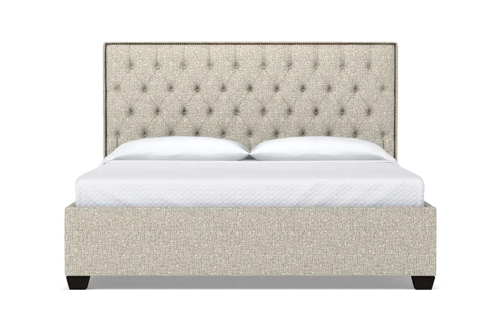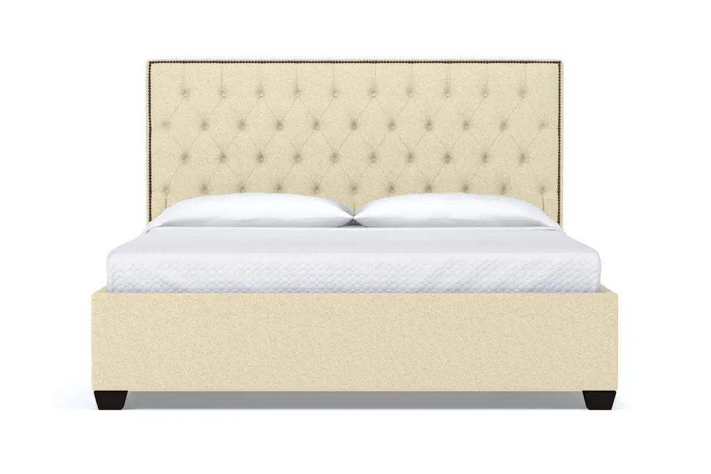 The Huntley Drive Upholstered Bed is an expertly-crafted bed that features an ornate button tufted headboard with a rustic antique nailhead trim. The lavish qualities of the Huntley Drive are balanced out with a contemporary and clean low profile base. The Huntley Drive Upholstered Bed comes in a Full Size, Queen Size, King Size, and California King. This bed does require a box spring for your mattress to achieve proper support. The Huntley Drive is the perfect bed for adding a touch of glamour and class to your apartment or your home. It's also one of our fantastic Apt2B products that's built to order in our downtown Los Angeles factory where it is upholstered in any of our quality line of pet friendly and kid friendly fabrics. The Huntley Drive Upholstered Bed is sure to give you sweet dreams.