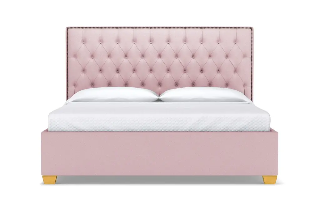 The Huntley Drive Upholstered Bed is an expertly-crafted bed that features an ornate button tufted headboard with a rustic antique nailhead trim. The lavish qualities of the Huntley Drive are balanced out with a contemporary and clean low profile base. The Huntley Drive Upholstered Bed comes in a Full Size, Queen Size, King Size, and California King. This bed does require a box spring for your mattress to achieve proper support. The Huntley Drive is the perfect bed for adding a touch of glamour and class to your apartment or your home. It's also one of our fantastic Apt2B products that's built to order in our downtown Los Angeles factory where it is upholstered in any of our quality line of pet friendly and kid friendly fabrics. The Huntley Drive Upholstered Bed is sure to give you sweet dreams.