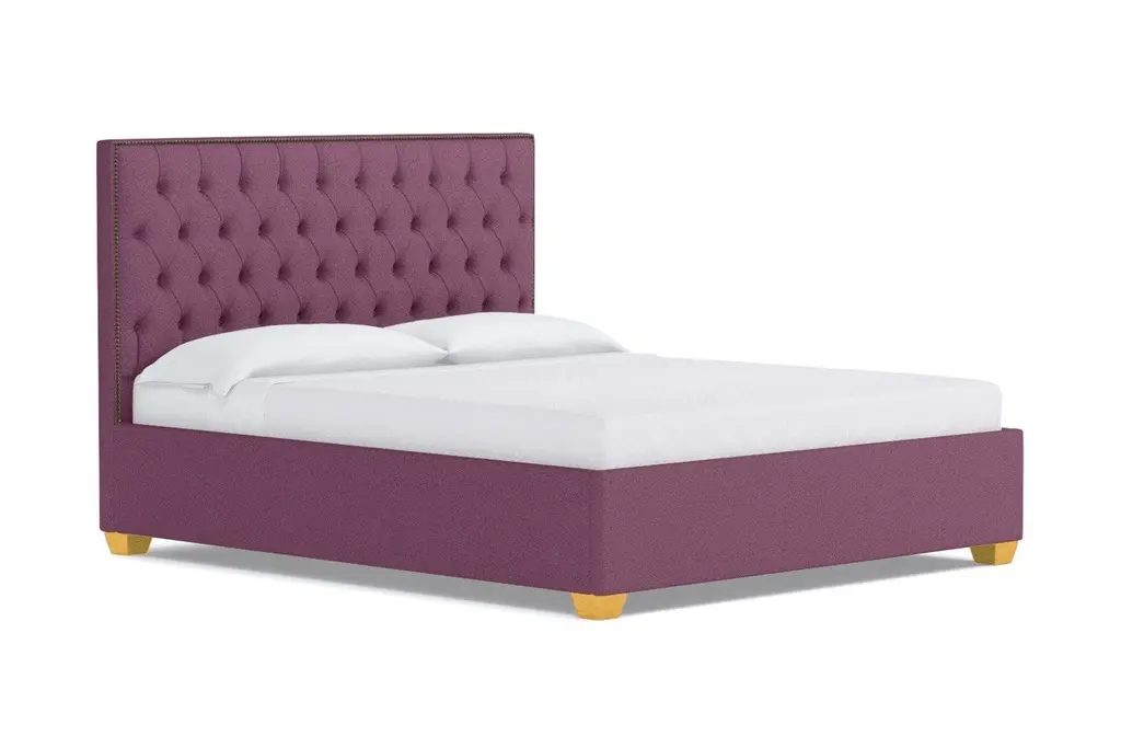 The Huntley Drive Upholstered Bed is an expertly-crafted bed that features an ornate button tufted headboard with a rustic antique nailhead trim. The lavish qualities of the Huntley Drive are balanced out with a contemporary and clean low profile base. The Huntley Drive Upholstered Bed comes in a Full Size, Queen Size, King Size, and California King. This bed does require a box spring for your mattress to achieve proper support. The Huntley Drive is the perfect bed for adding a touch of glamour and class to your apartment or your home. It's also one of our fantastic Apt2B products that's built to order in our downtown Los Angeles factory where it is upholstered in any of our quality line of pet friendly and kid friendly fabrics. The Huntley Drive Upholstered Bed is sure to give you sweet dreams.