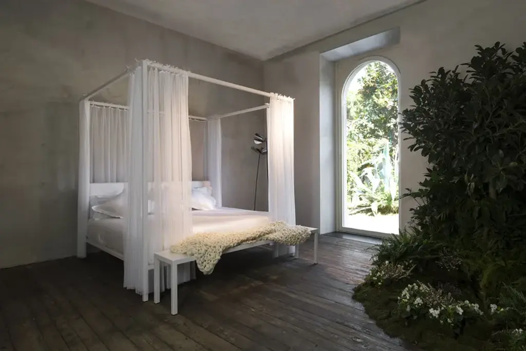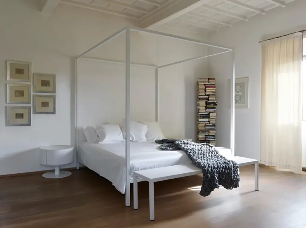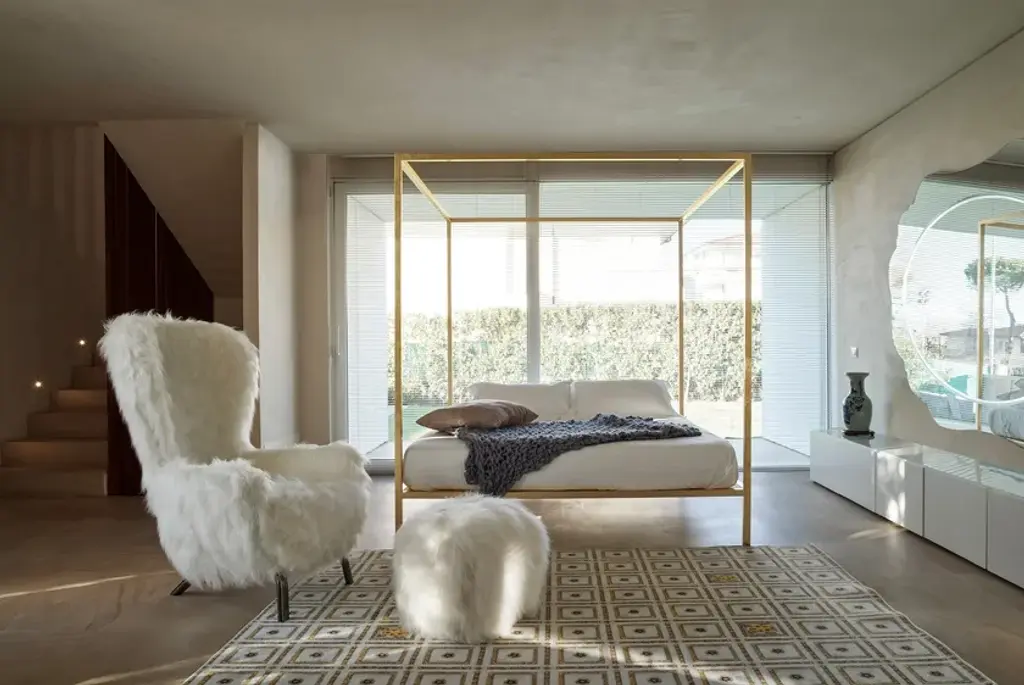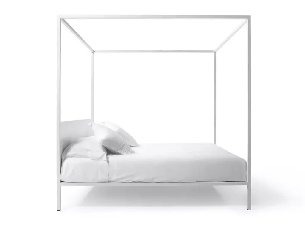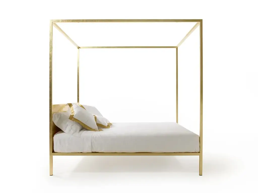 Simple, minimalist, with clean lines, ILletto, designed by Lapo Ciatti, eliminates the superfluous to go back to the essence. It is in fact a canopy bed with a steel supporting structure and it is available in three sizes and two variants (with or without headboard). Space to the imagination instead regarding the finishes both for the headboard and for the whole structure. ILletto can come matt lacquered in one of the 213 colours from the RAL classic collection or be covered by a precious and shiny leaf (gold, silver or copper). As for the headboard, you can decide to insert it and you can choose between the rigid version in plywood coordinated with the structure or the soft one, upholstered with various types of fabric and leather. A bed in which, as in fairy tales, to indulge in sweet dreams.Canopy bed with supporting steel structure with or without headboard, and natural plywood plate aired out. Bed finishes: 213 mat RAL Classic colors; glossy gold leaf, silver leaf, copper leaf. Plywood hard headboard finishes: 213 mat RAL Classic colors; glossy gold leaf, silver leaf, copper leaf. Soft headboard upholsteries: various types of fabric and leather, non-removable. Note: the leaves finishes are hand-crafted, thus making every item unique and featuring finishes variations.
