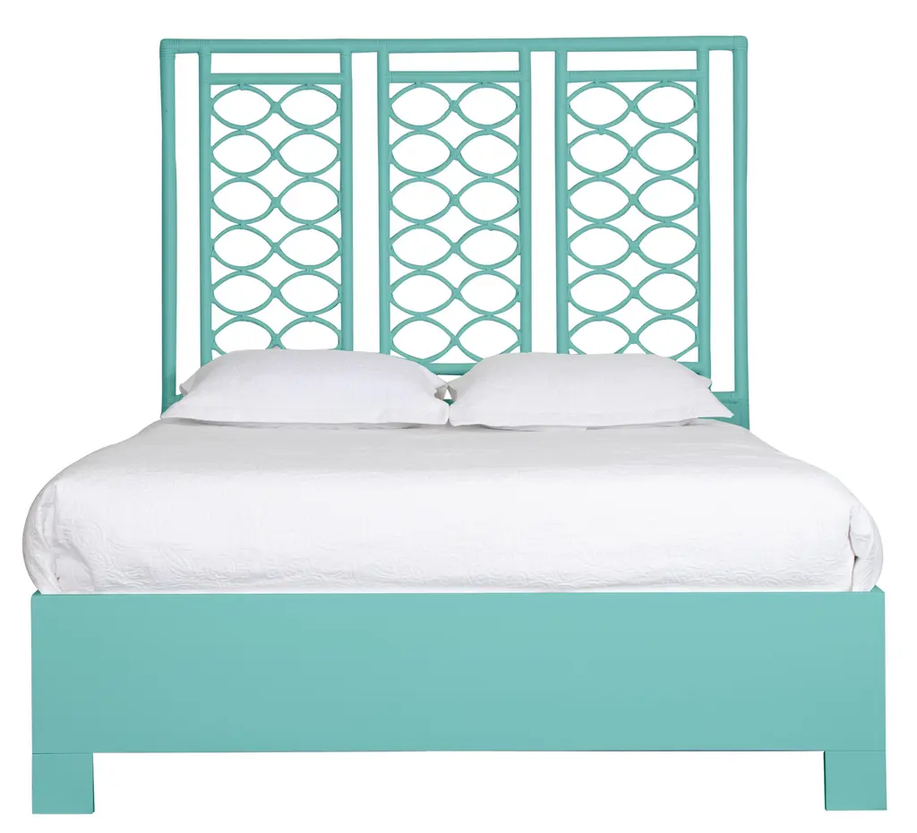 A timeless design, this classically styled bed features a Rattan headboard with a Maple Bed Frame. The Rattan headboard is hand-wrapped with Rawhide Bindings to add a beautiful contrast and strength. The Maple Bed Frame, which accepts a box spring and mattress, is built in the USA. The Rattan headboard easily attaches to the Bed Frame. Each bed is custom made and finished to order. This bed is an artistic centerpiece and will make a statement in any bedroom.