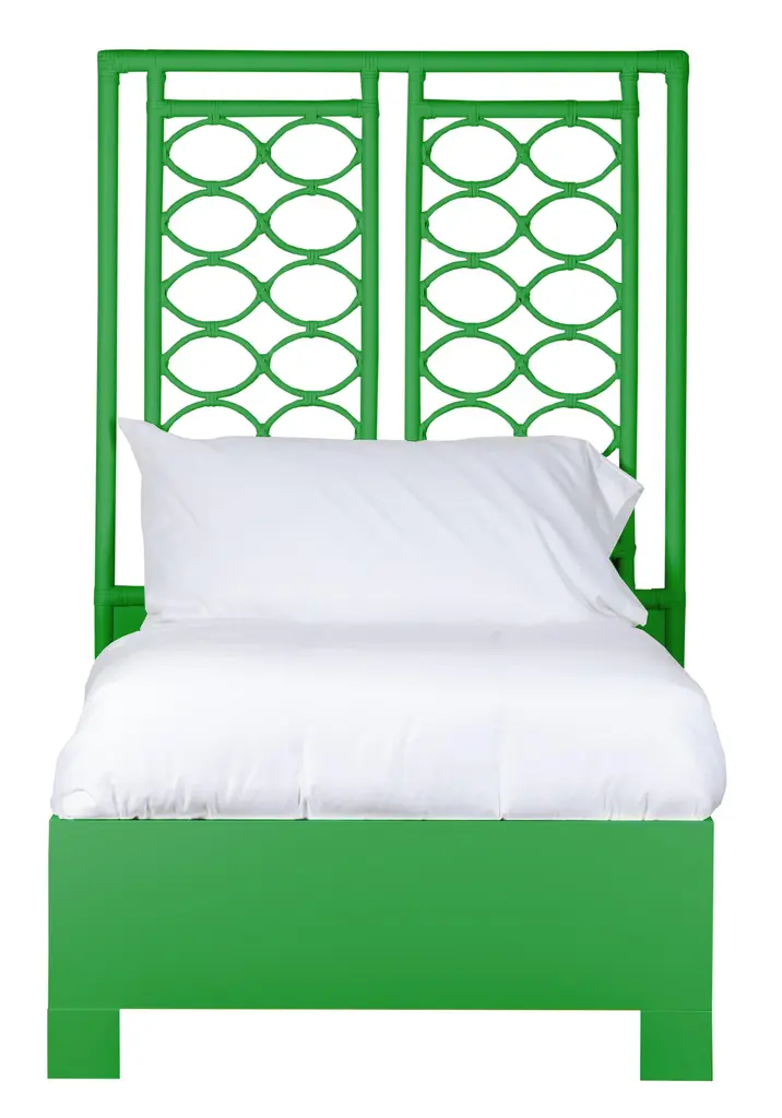 A timeless design, this classically styled bed features a Rattan headboard with a Maple Bed Frame. The Rattan headboard is hand-wrapped with Rawhide Bindings to add a beautiful contrast and strength. The Maple Bed Frame, which accepts a box spring and mattress, is built in the USA. The Rattan headboard easily attaches to the Bed Frame. Each bed is custom made and finished to order. This bed is an artistic centerpiece and will make a statement in any bedroom.