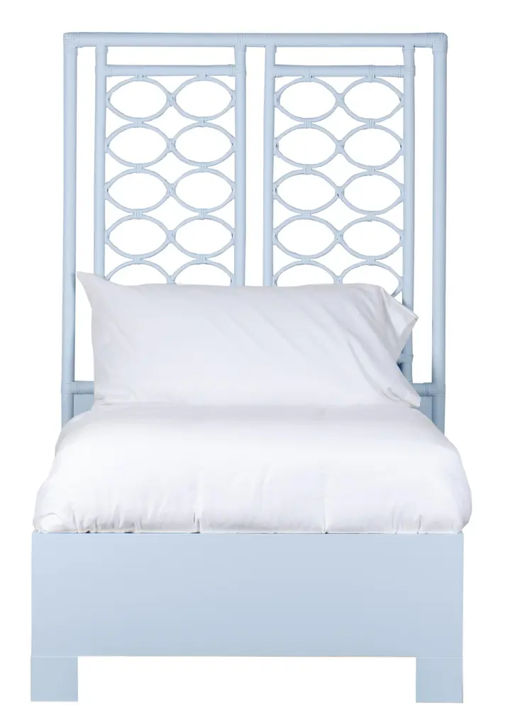 A timeless design, this classically styled bed features a Rattan headboard with a Maple Bed Frame. The Rattan headboard is hand-wrapped with Rawhide Bindings to add a beautiful contrast and strength. The Maple Bed Frame, which accepts a box spring and mattress, is built in the USA. The Rattan headboard easily attaches to the Bed Frame. Each bed is custom made and finished to order. This bed is an artistic centerpiece and will make a statement in any bedroom.