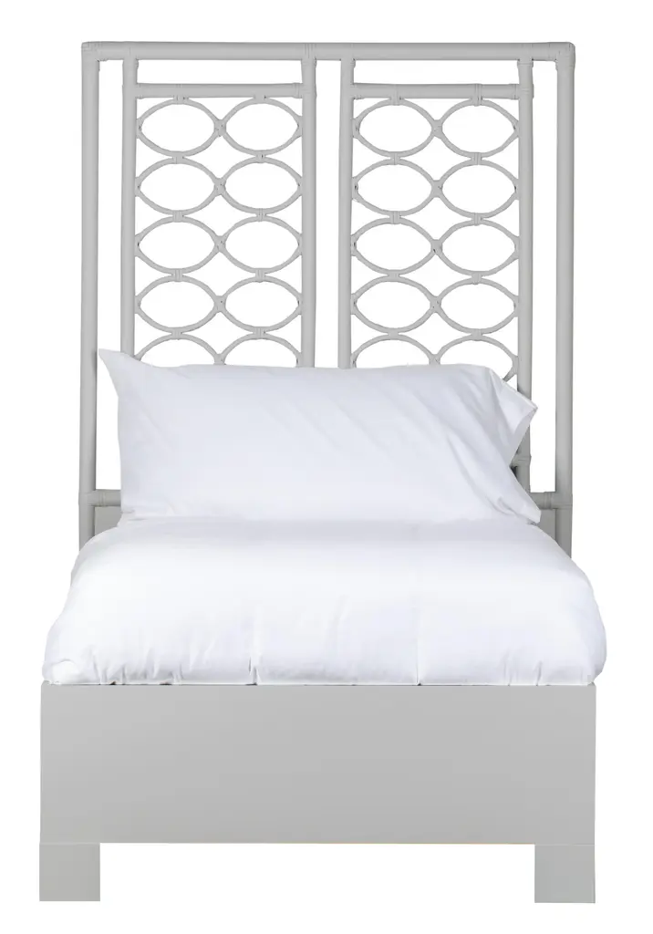 A timeless design, this classically styled bed features a Rattan headboard with a Maple Bed Frame. The Rattan headboard is hand-wrapped with Rawhide Bindings to add a beautiful contrast and strength. The Maple Bed Frame, which accepts a box spring and mattress, is built in the USA. The Rattan headboard easily attaches to the Bed Frame. Each bed is custom made and finished to order. This bed is an artistic centerpiece and will make a statement in any bedroom.