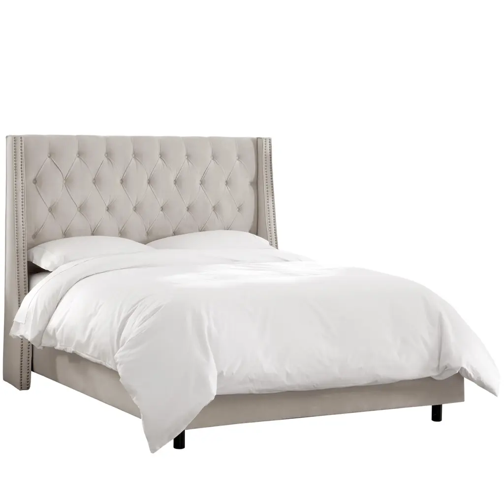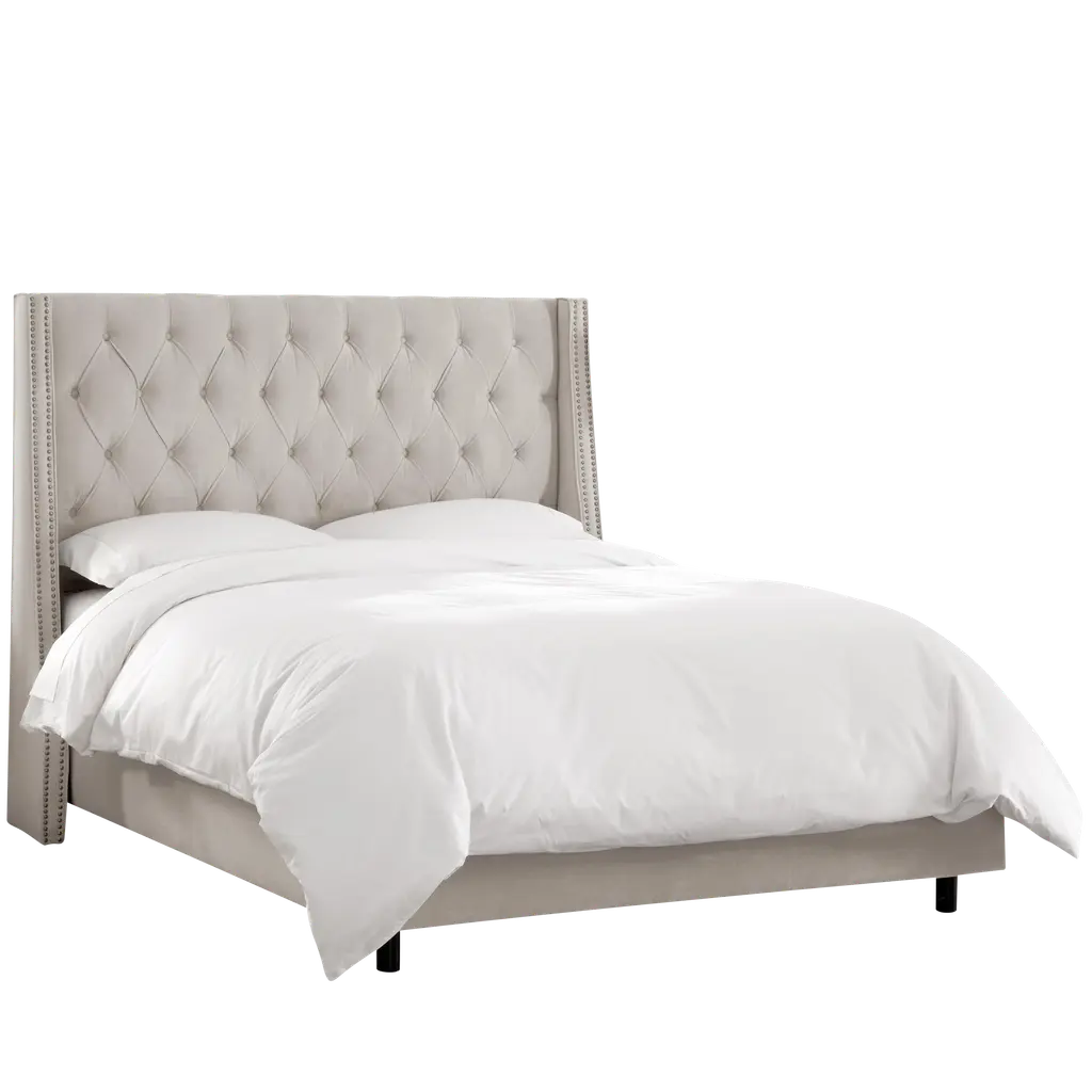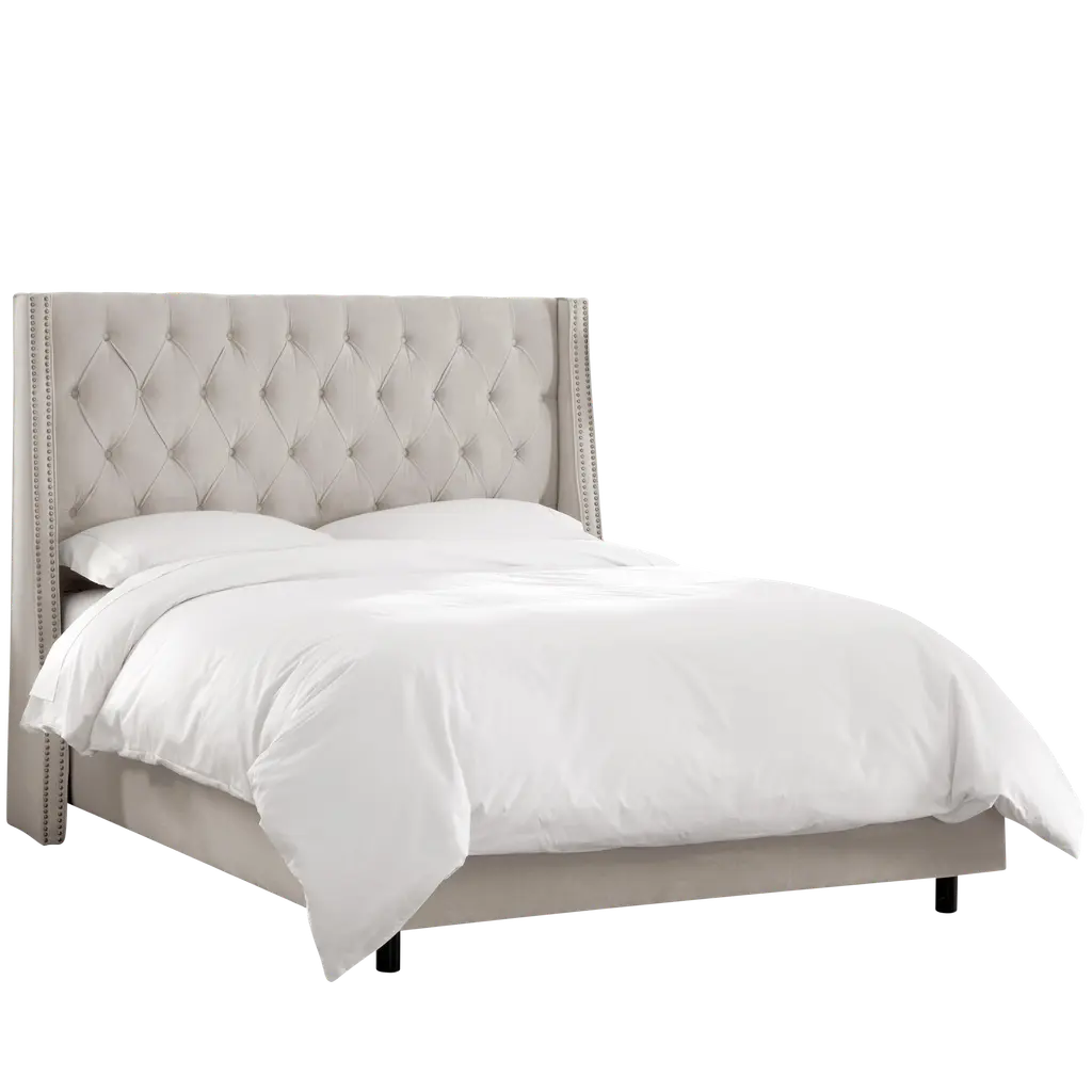 Ivy Tufted Wingback Bed In Light Grey Classic Velvet, Full