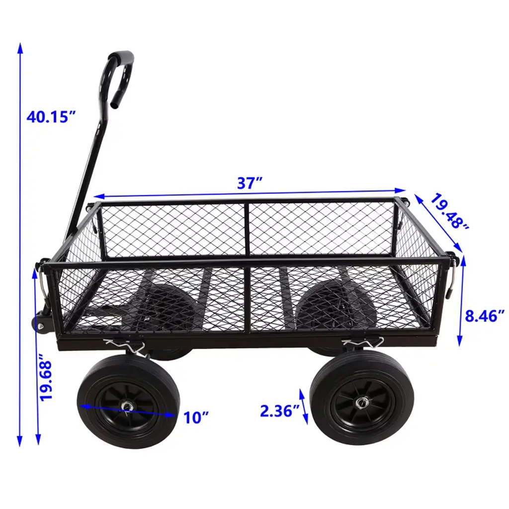 This multi-functional garden cart works as a practical tool cart, fitting seamlessly into gardening, farming, yard, and home use scenarios. Its spacious bed offers ample room to hold debris, farming tools, and even transport or store fertilizers and pesticides. Designed to simplify work, it lets you effortlessly handle gardening tasks like lawn mowing and tree trimming. Unlike carts with pneumatic tires, it comes with powerful solid tires that skip the hassle of inflation, gliding easily across lawns and uneven terrain to reach every garden corner. Whether for daily yard chores or home storage needs, it combines versatility and convenience for reliable use.