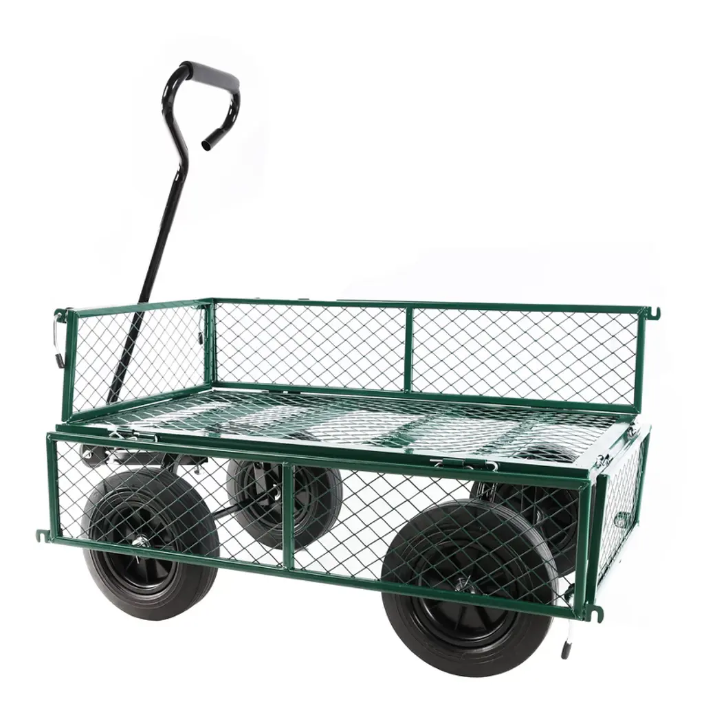 Jansno Green Multi-functional Garden Cart With Spacious Bed, Solid Tires For Gardening/farming/yard/home Tasks