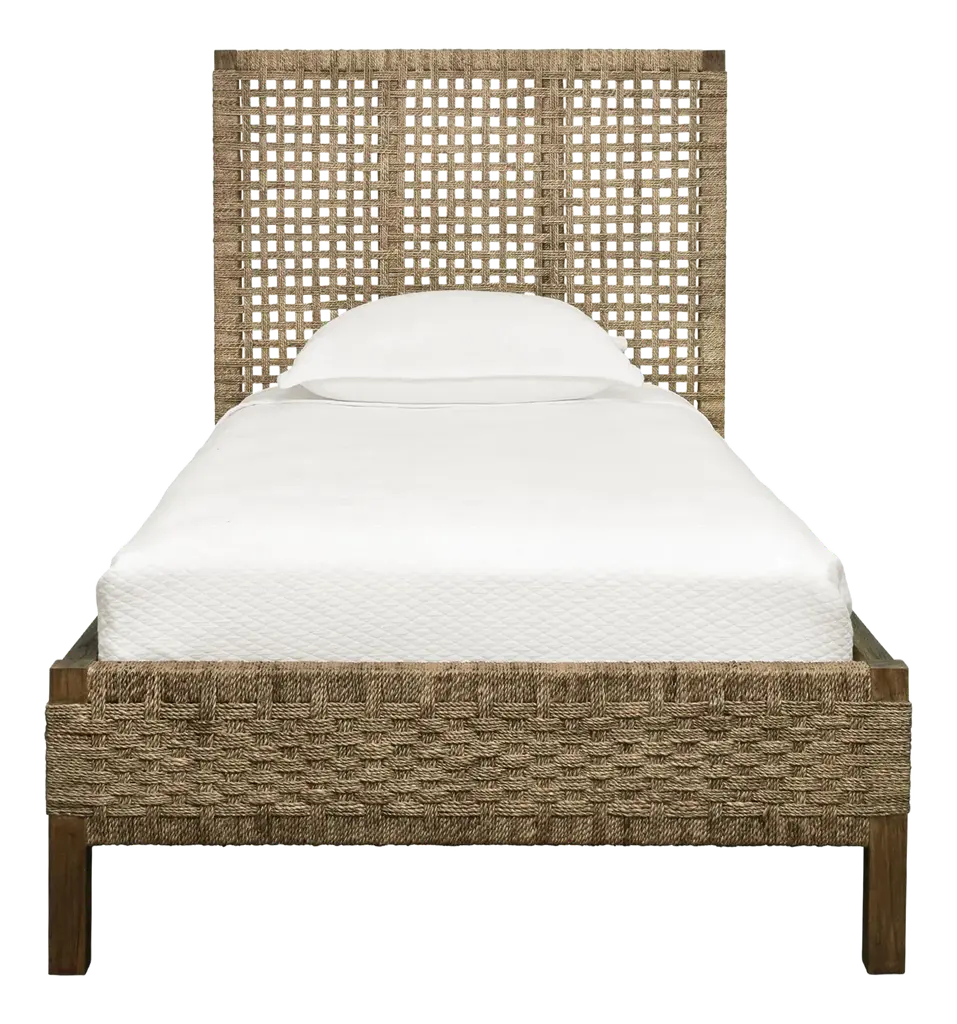 Mixed materials play up the Safari-style inspiration of this beautifully balanced bed. Framed in solid sungkai wood and woven with durable faux rattan for long-lasting appeal.