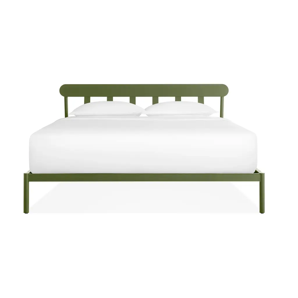 The Minnesota-made Jennings kids' bed is crafted from durable steel with an intricate silhouette that's inspired by a classic stairwell railing. The headboard is slightly pitched for comfortable sitting and reading in bed, and its tall profile is as much a headboard as it is a work of art. Choose from a variety of colors.