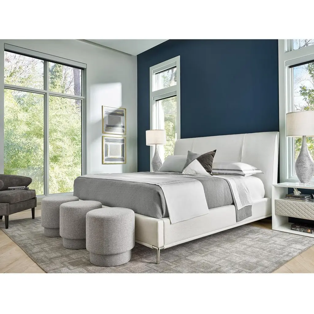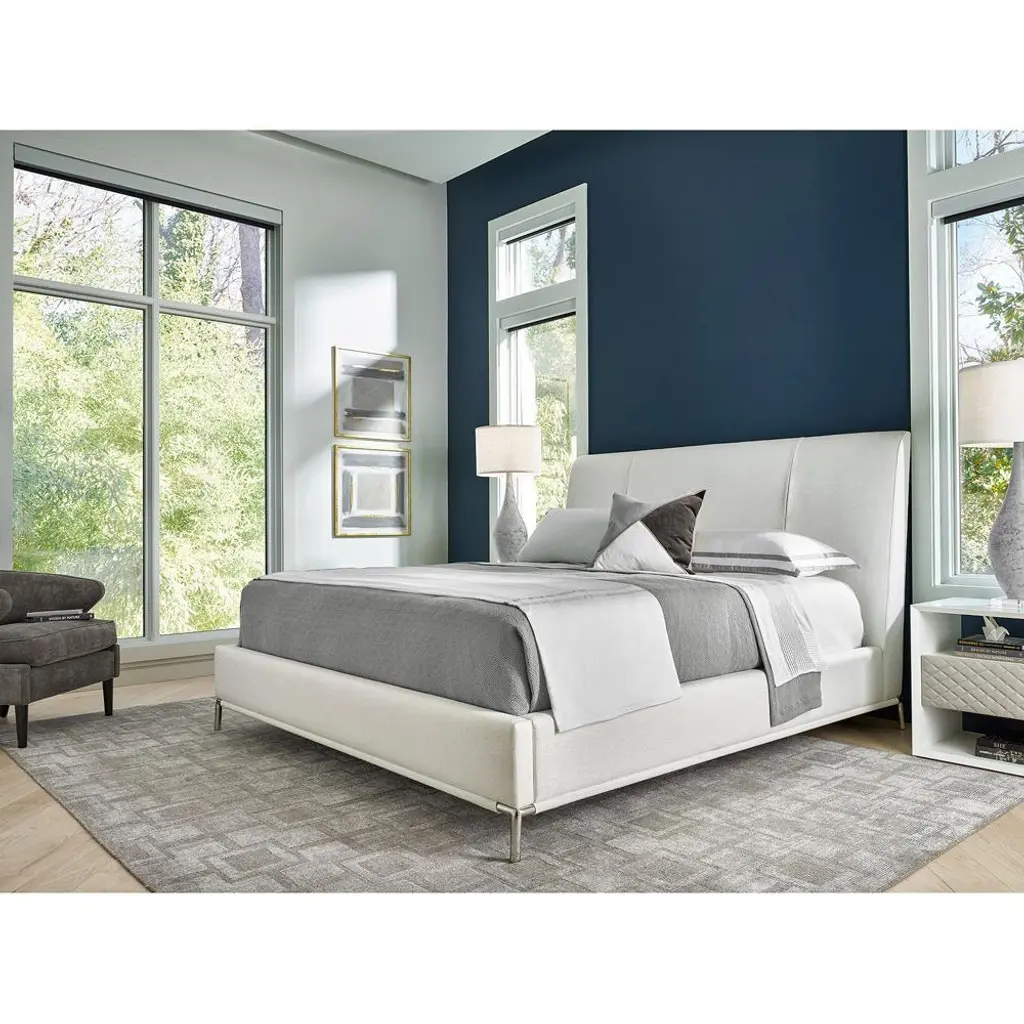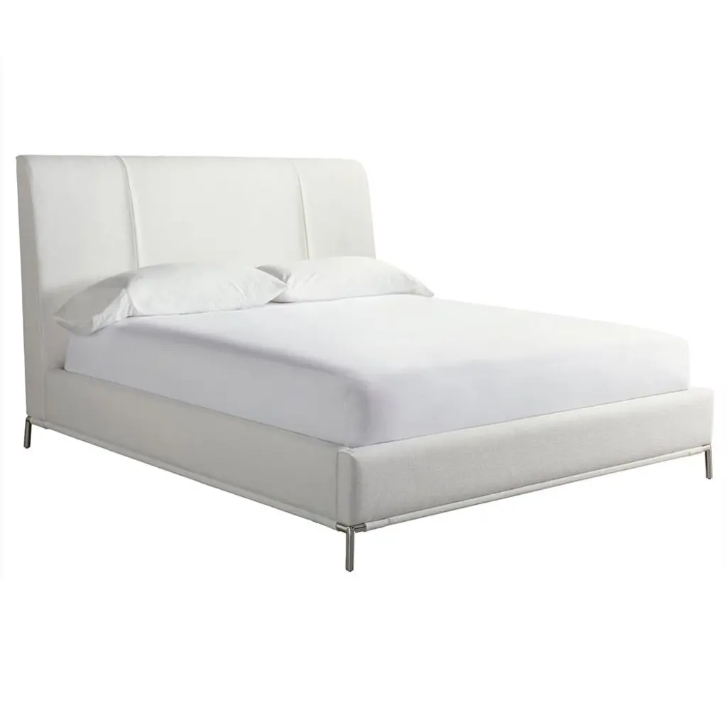 Jhay Modern Classic White Performance Upholstered Silver Metal Bed - King