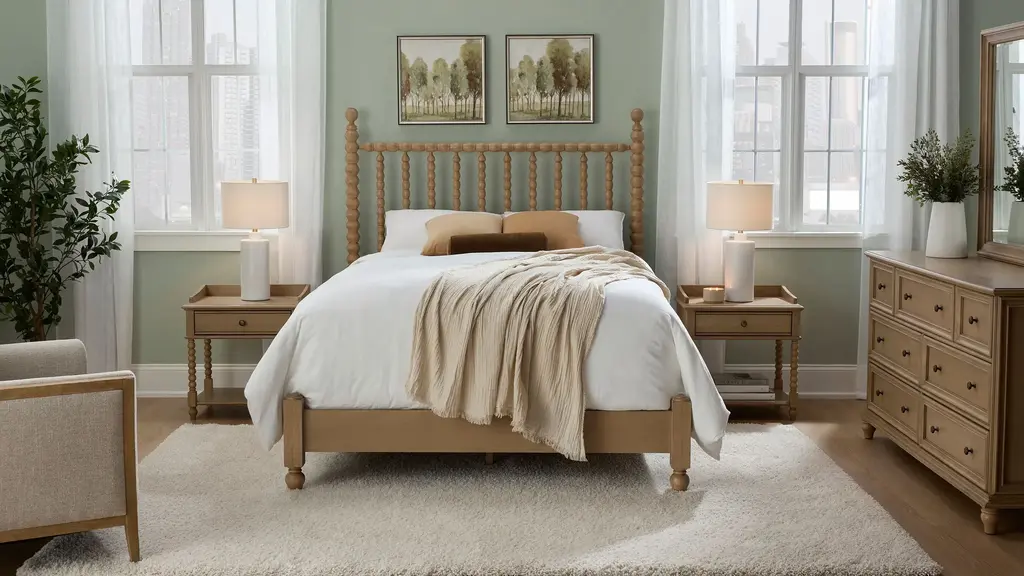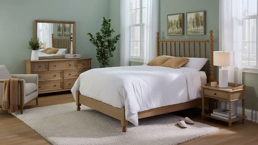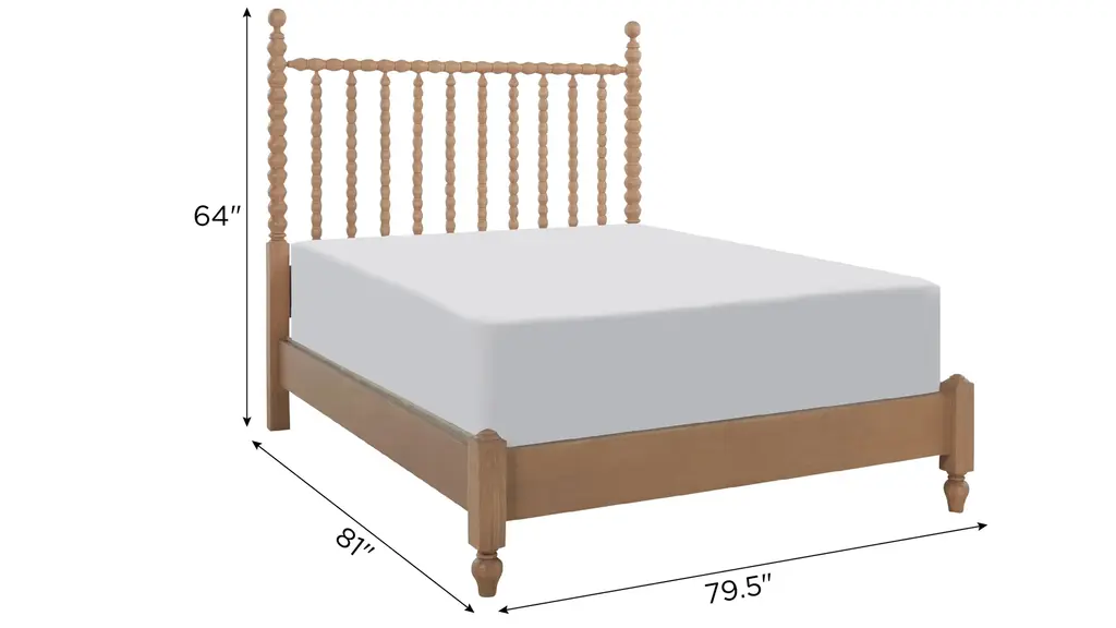 A timeless style takes a turn for the modern with the Joy Bed. The spindle-style headboard and low-profile footboard present a clean and airy spaciousness that beautifully complements the warm, natural wood finish. Match this versatile style with a variety of bedding and decor, from crisp white linens to bohemian prints.
