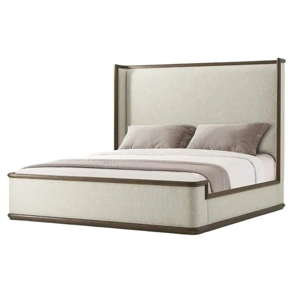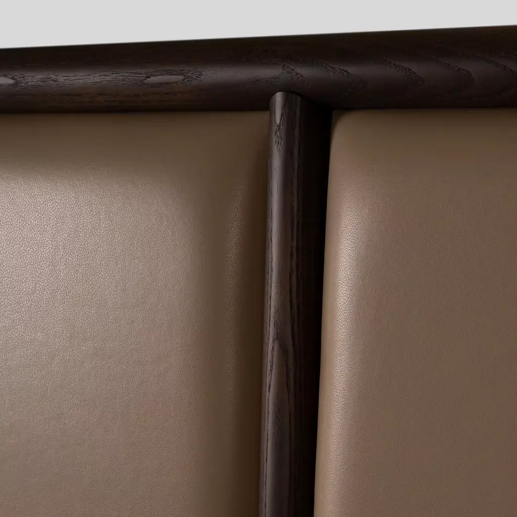 Boasting contemporary designer Libero Rutilo's signature sleek and clean lines of timeless sophistication, this bed will make for a bold and elegant accent to a modern bedroom decor. The structure is made of ash wood resting on brass feet, enriched with a shaped and stately headrest with Vienna straw sides, and a leather or fabric upholstery upon choice. The bed is softly padded and also upholstered in fabric or leather. Mattress is not included, please consult the Concierge for further details.