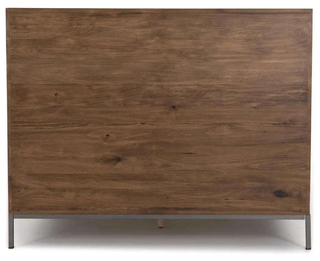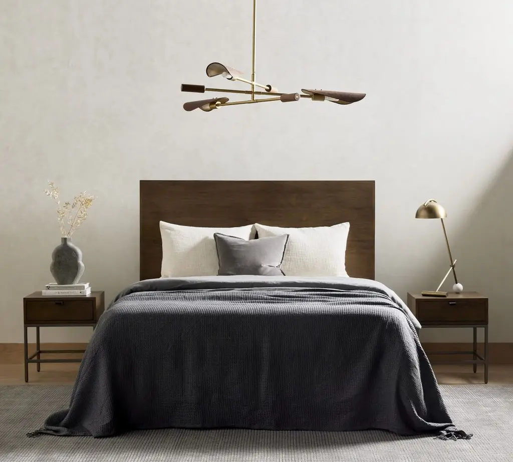 This bed's clean lines and flat surfaces show off the rich grain of the poplar to striking effect. The iron legs and base provide a tailored finish.