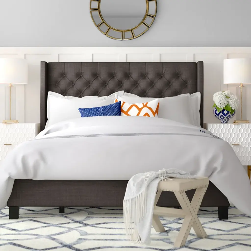 This wingback platform bed would be right at home in a five-star hotel – and in your bedroom, of course. The upholstered headboard boasts sheltering sides (hello, dimension!) and button tufting, and the frame is crafted from sturdy solid poplar. Available in your choice of neutral linen hues, this bed just might inspire you to redo the entire room around it.