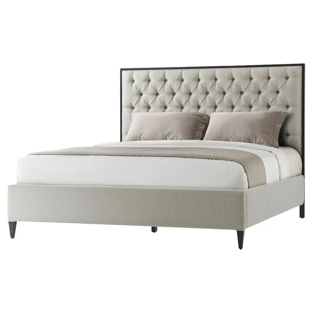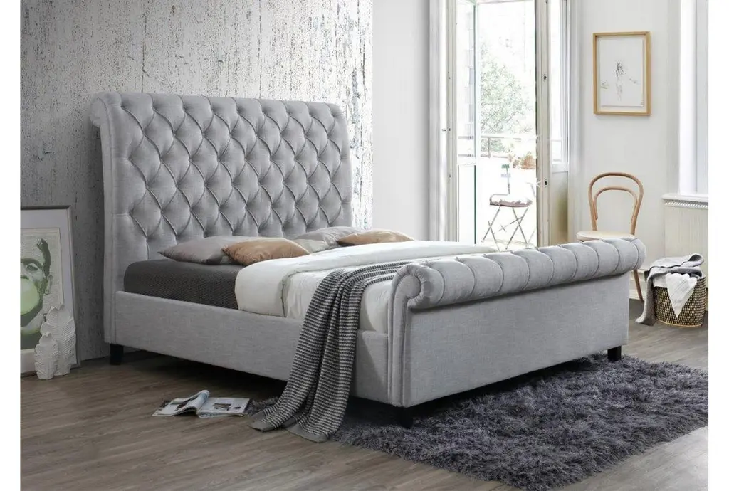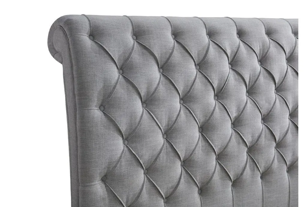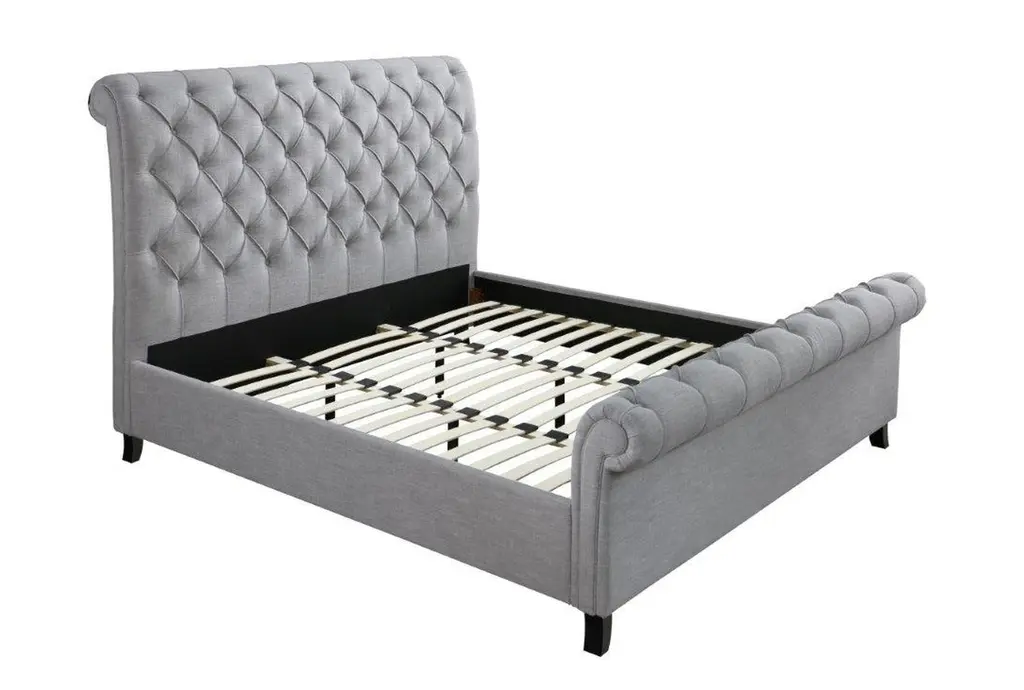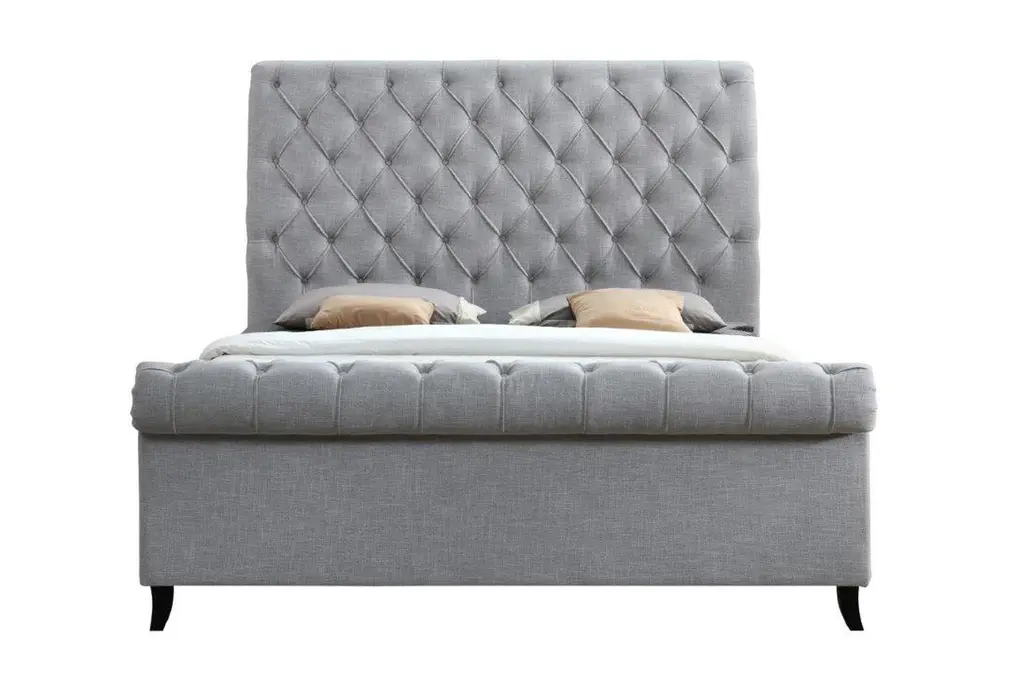 Kathy Grey King Upholstered Chesterfield Sleigh Bed