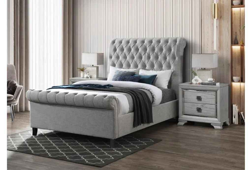 Kathy Grey Queen Upholstered Chesterfield Sleigh Bed