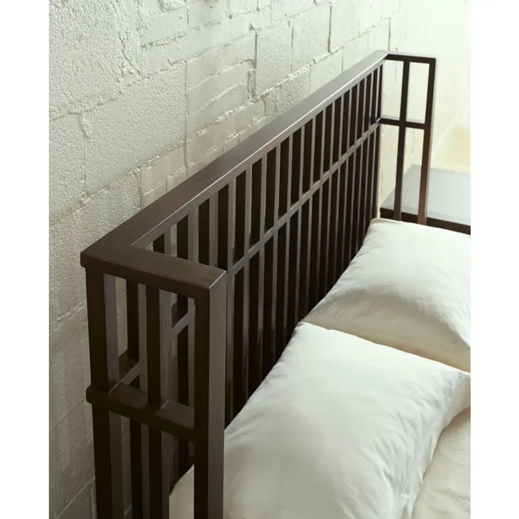 The bold Katsura Collection is inspired by the understated luxury of Asian heritage palace architecture that combines both feelings of modern and traditional design. This gorgeous bed with an exquisite headboard in the signature slatted frames of the Katsura collection makes a beautiful statement in any bedroom. Each of our products is unique due to the wood grain variation and hand crafted techniques.